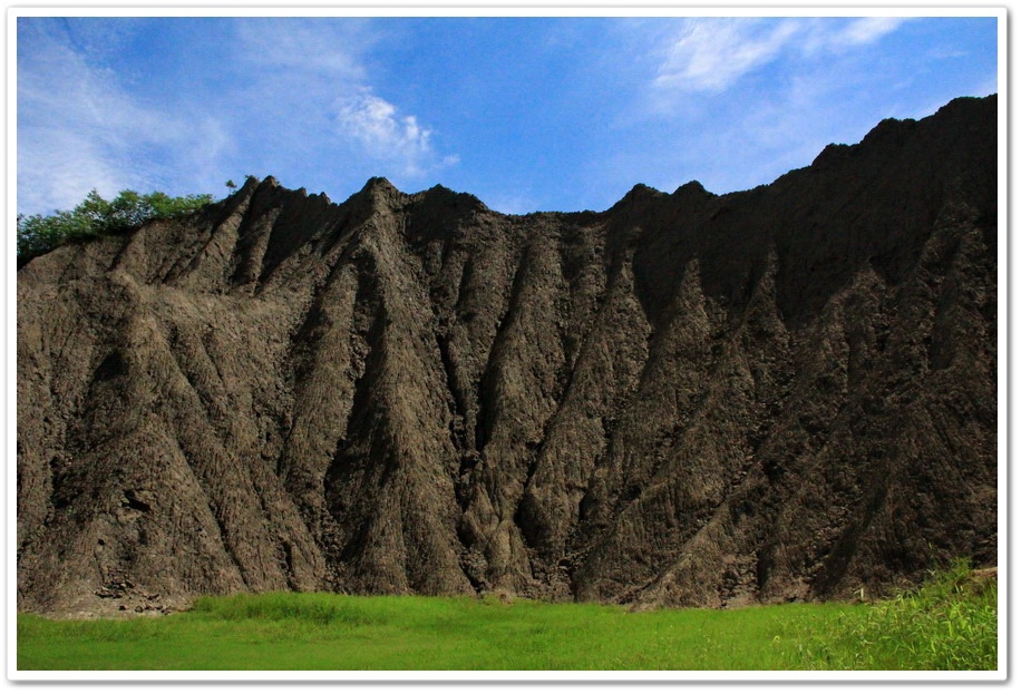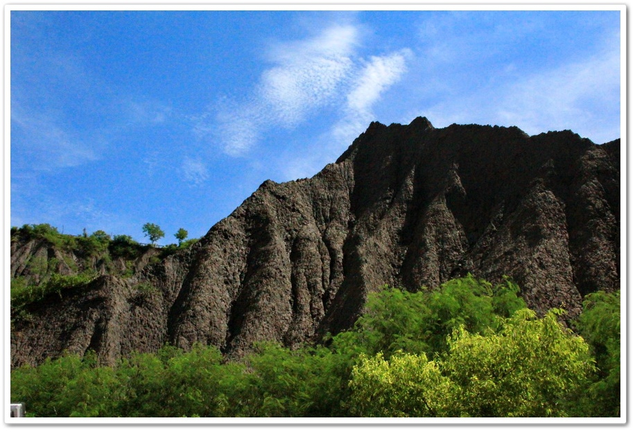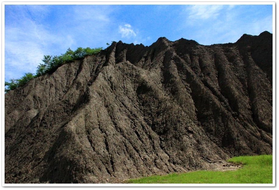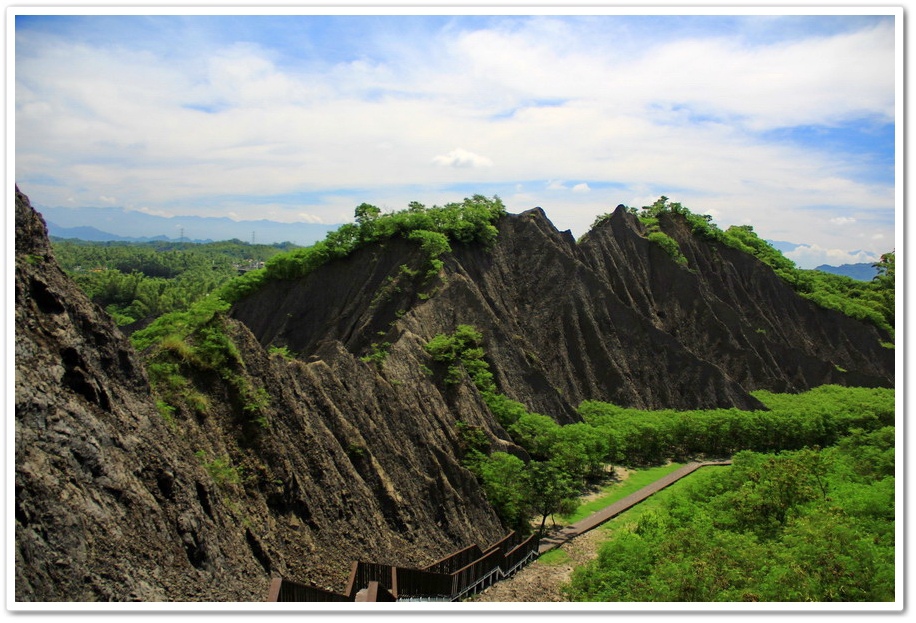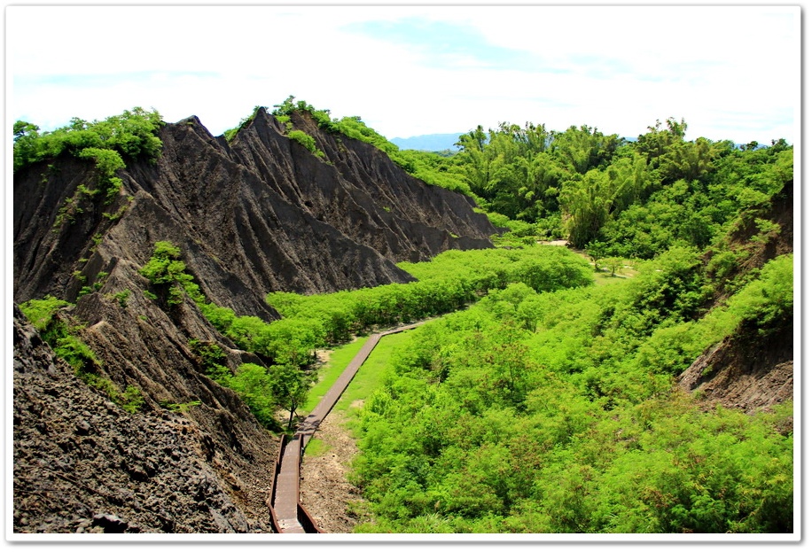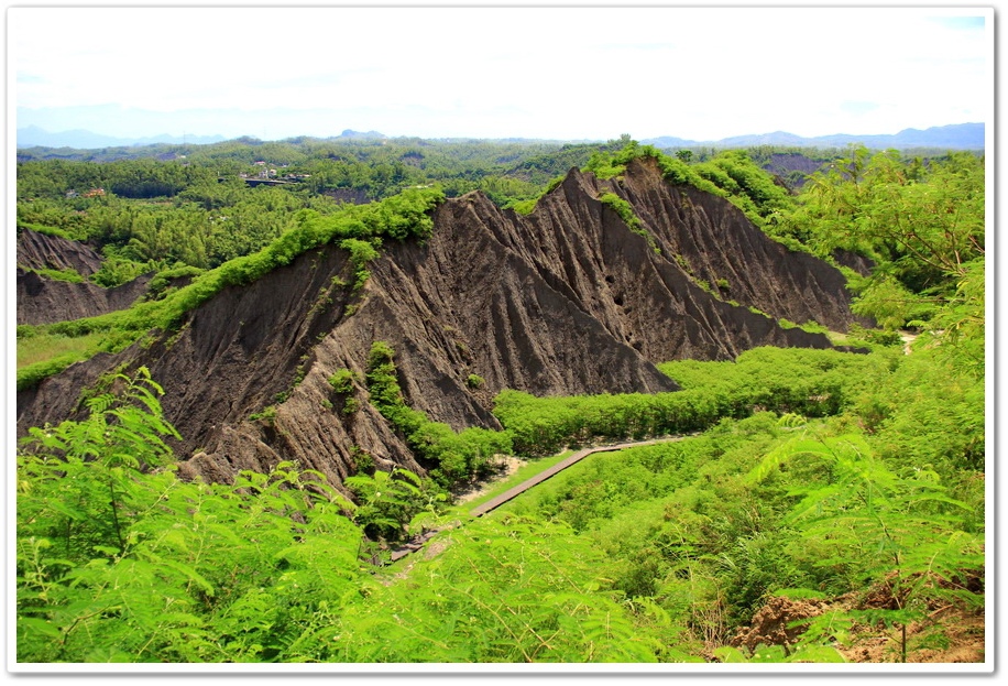 因此在乾、雨季的曝曬風化、崩解及侵蝕、流失的交互作用下,部分地區表層有版狀剝離滾落的現象,除形成陡峭坡地外,更切割出一道道鋸齒狀的山脊和V型侵蝕溝,逐漸形成奇特的尖銳嶙峋的泥岩地形景觀