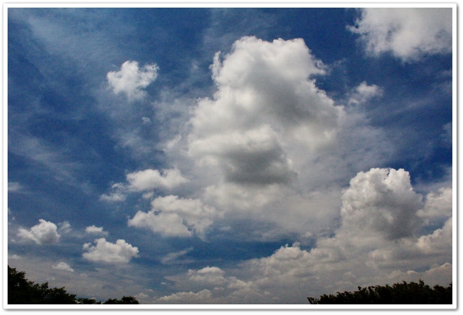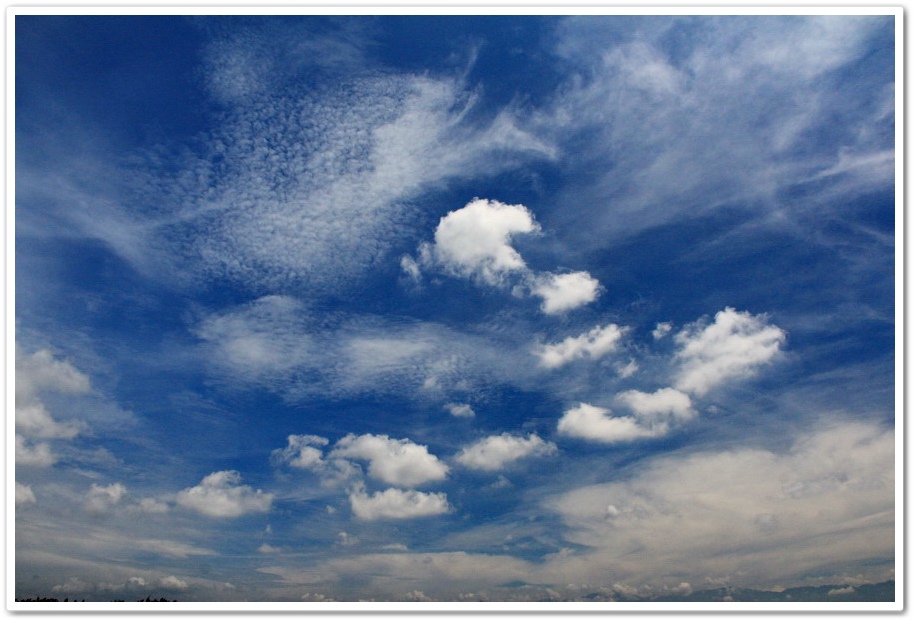 今天的天氣非常好,天空中的白雲一朵朵,雲朵不時的變化成各種形狀,不論天空或泥地,都是今天最美的風景