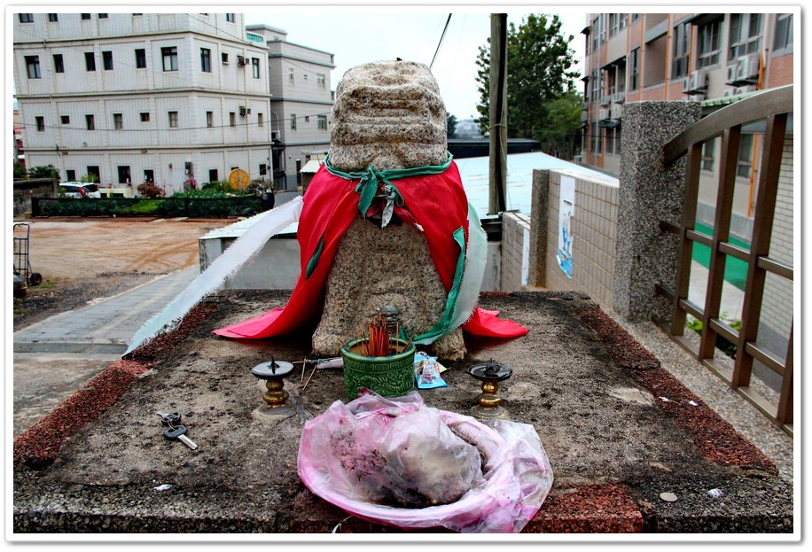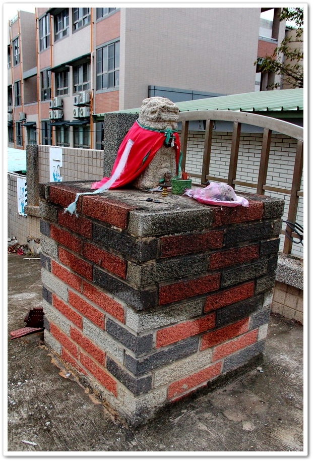 之後我再度走出『東蕭』聚落,來到了金沙鎮最熱鬧的市街心『沙美車站』,『沙美車站』的對面則是『金沙國小』,就在『金沙國小』的東側圍牆邊發現這一尊『后浦頭風獅爺』,又稱為沙美『東尾甲風獅爺』