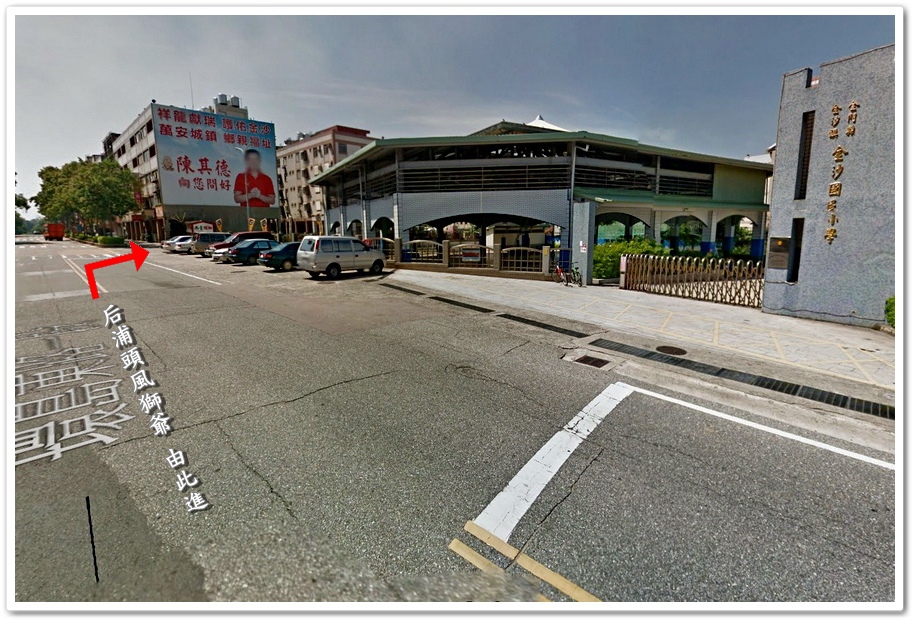 風獅爺左側隔著圍牆的是『金沙國小』,按舊時行政區域劃分,此地原屬沙美『東尾甲』,後因『后浦頭』擴大聚落範圍,而將該區納入,也因此風獅爺跟著劃入『后浦頭』