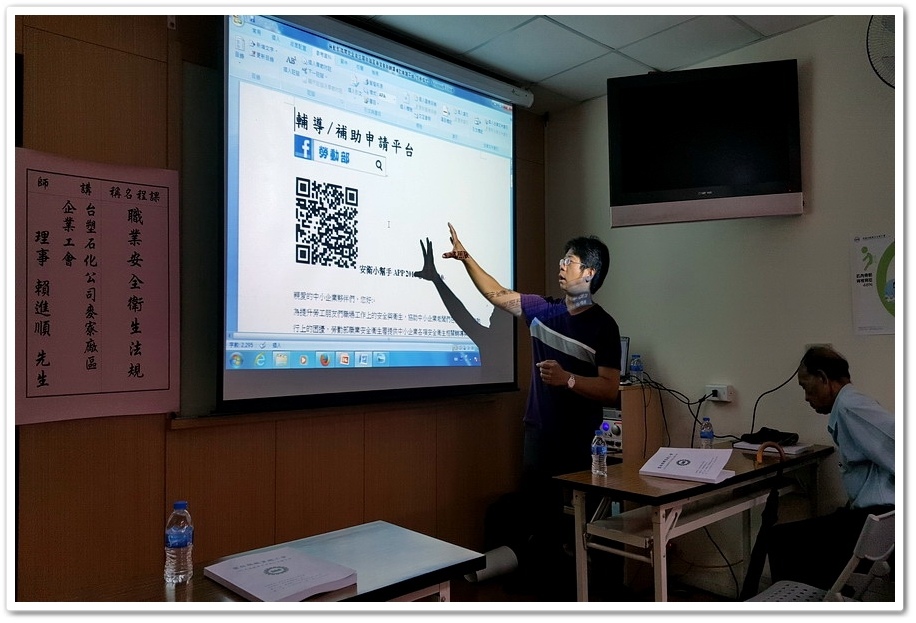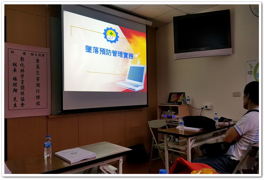 一節課有50分鐘,中間休息10分鐘,第二節課是『墜落災害預防課程』,講師是『彰化縣勞資關係協會』的組長『楊珺翔』先生,由於『楊珺翔』講師演講得實在是太精彩,完全沒有冷場,所以竟然因此而忘了拍『楊珺翔』講師,只能以此畫面交待略過