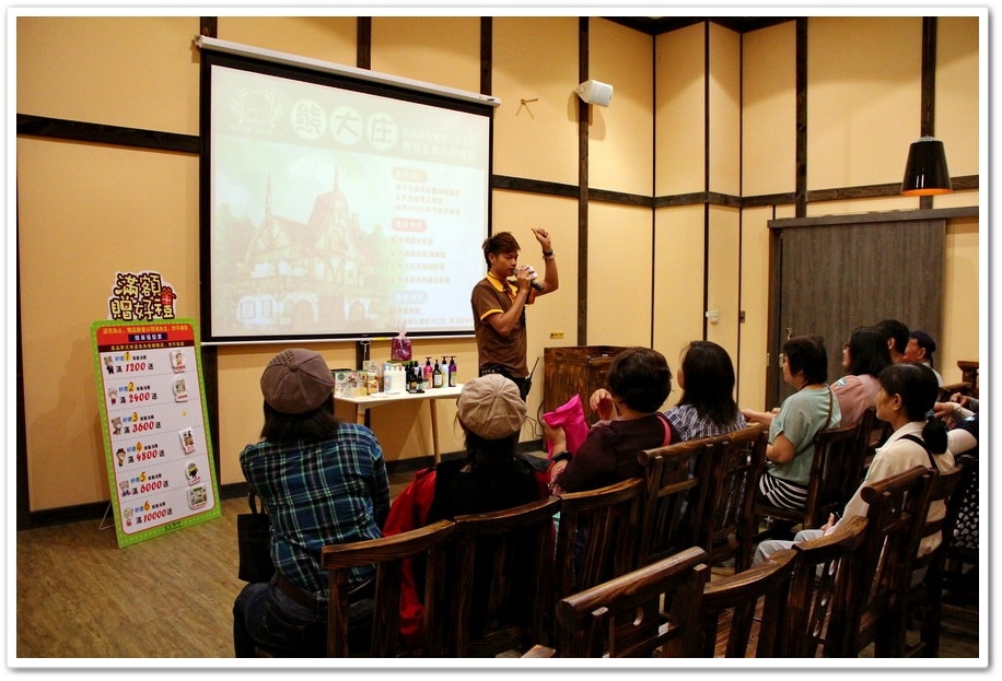首先我們進入『簡報室』,聽取講解有關『熊大庄』產品的各種知識,以及『熊大庄』建廠的由來