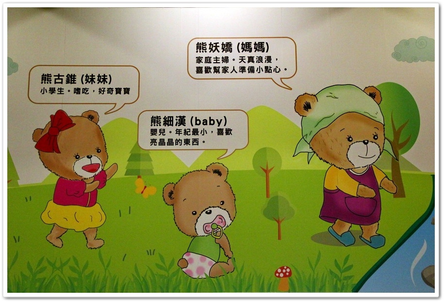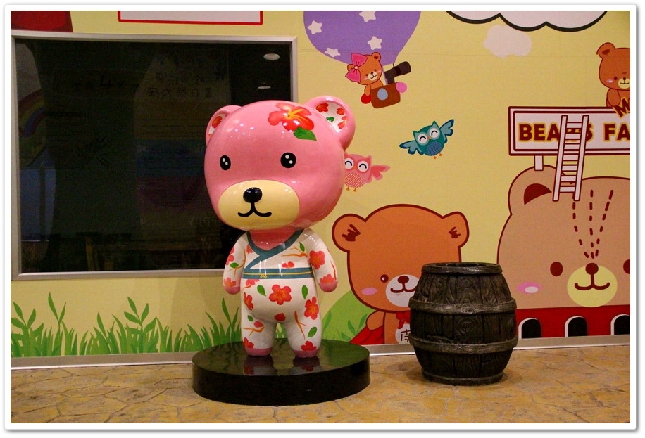 上圖在門口歡迎大家的是熊熊家族裡面的『熊美麗姊姊』,職業 : 高中生。星座 : 雙子座。印象 : 愛美。特色 : 多才多藝、超級愛漂亮,愛研究保養品