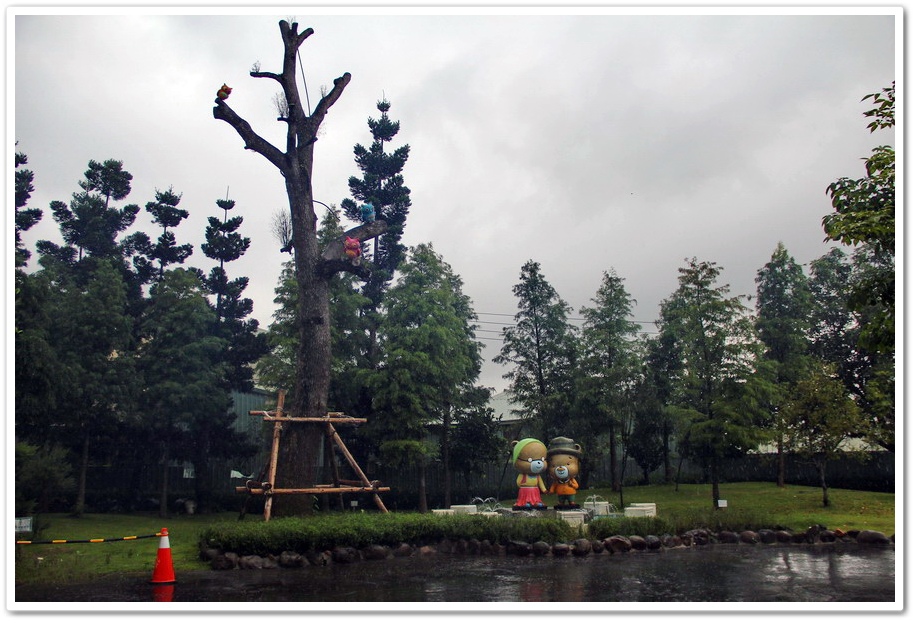 今日的參觀行程很不巧,不僅陰雨綿綿,天空中還灰成一片,所有的拍照都變成了有如灰褐色,要能好看也很難,還好『熊大庄森林觀光工廠』是室內行程,影響不大,但下一個行程不知也會如這樣的陰雨天氣