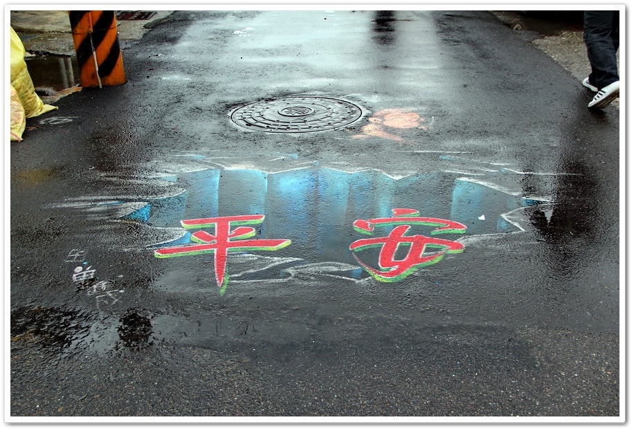 如巷弄街道上的『年』、『財』、『平安』等,走跨過地上『年』字的彩繪,即意『跨年』的意思
