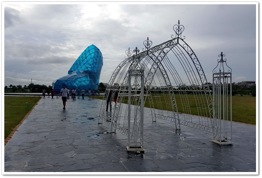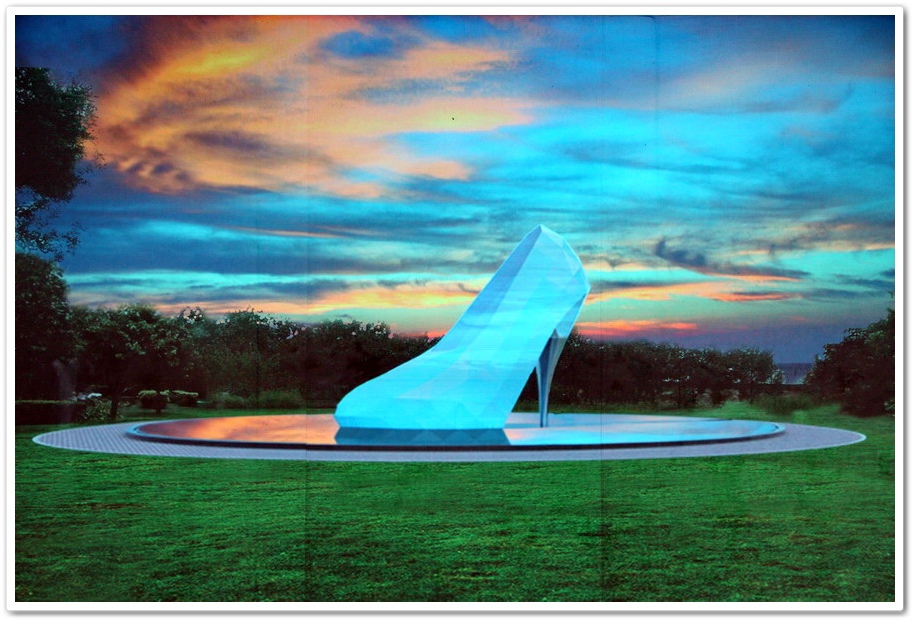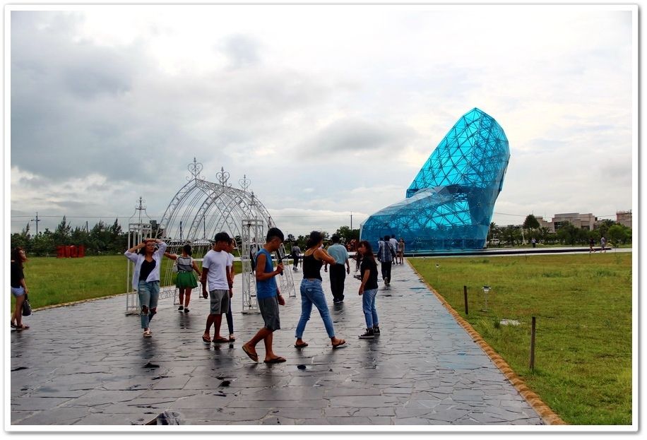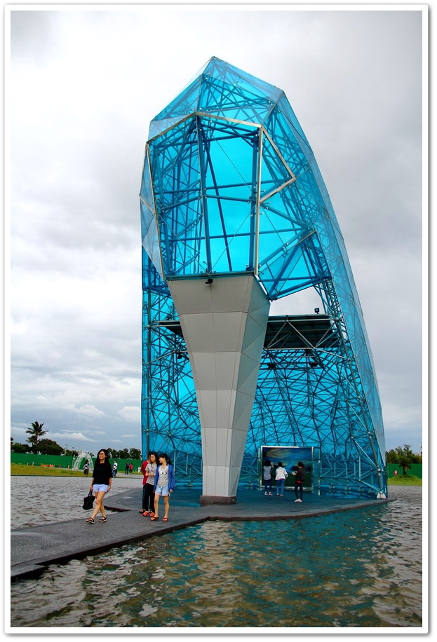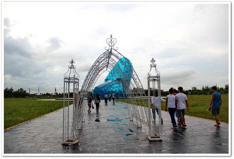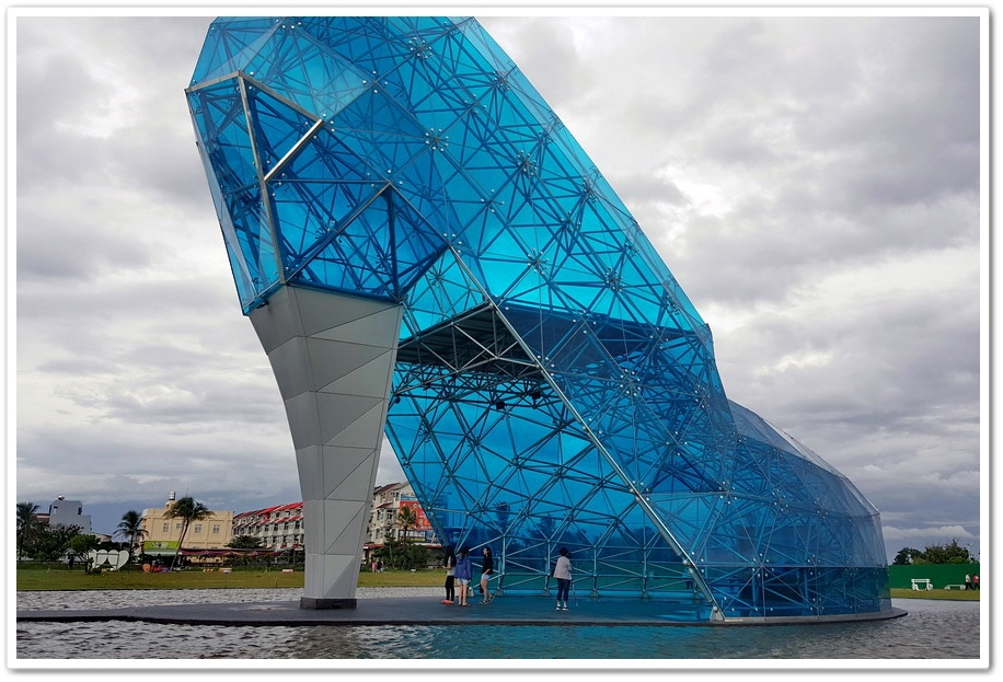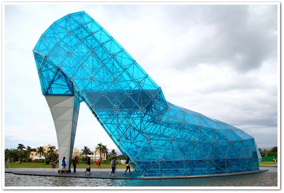 外觀為藍色透明玻璃高跟鞋造型,主體結構總高約17公尺,長達11公尺,以1269根鋼架和320片玻璃拼組而成,每片玻璃的大小與拼裝角度各異,總工程費用耗資新台幣2317萬元
