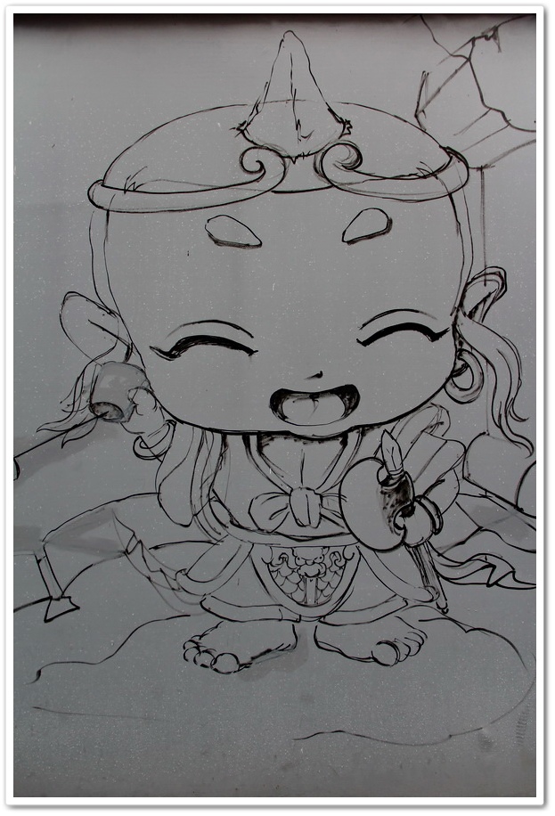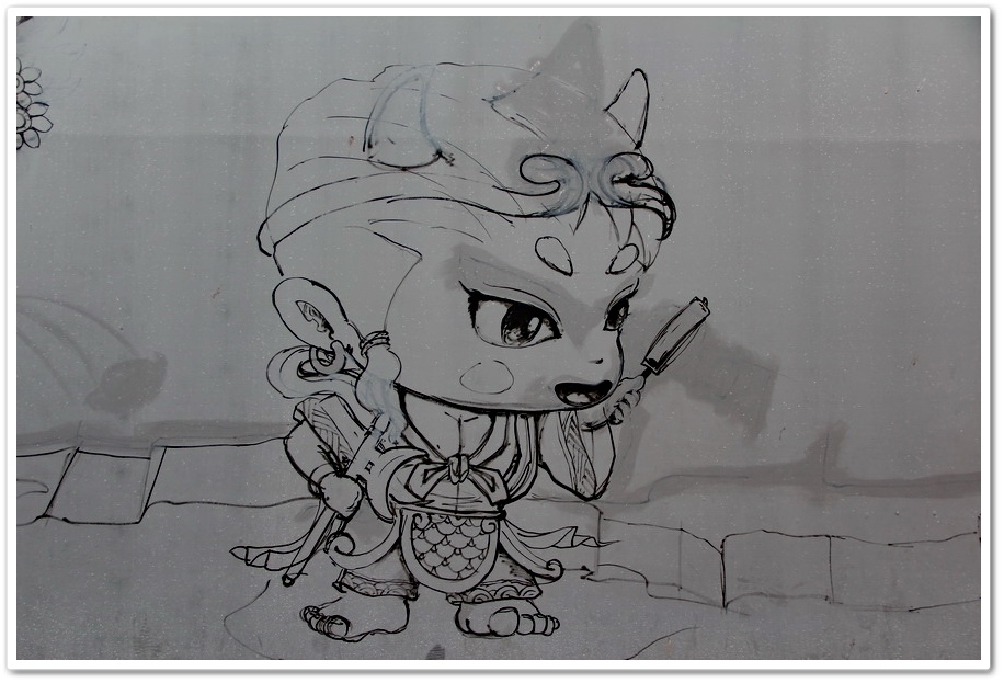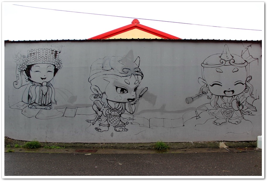 還有在『太聖宮』旁的民居牆壁,尚有三幅彩繪剛上了素描,是目前最新的彩繪圖案,共有『媽祖娘娘』、『千里眼』與『順風耳』