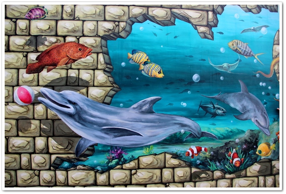 不論是海中的鯊魚、海龜,甚至是白雪公主與小矮人,都在畫筆的揮灑下,栩栩如生的現身於『好美里』