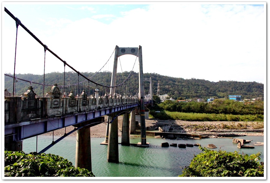 昭和九年(1934),日本統治時期,在日治時代改建成為全長280公尺的雙孔鋼索吊橋,與現今樣貌較為符合