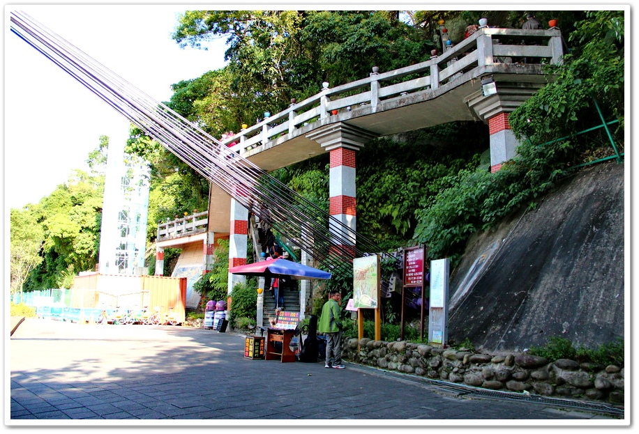 不過我們在2016年12月24日走訪時,當然透明景觀電梯還未開放,所以我們是沿著階梯拾級而上,在階梯欄杆有很多代表著大溪的陀螺,五顏六色的陀螺在欄杆上很吸睛