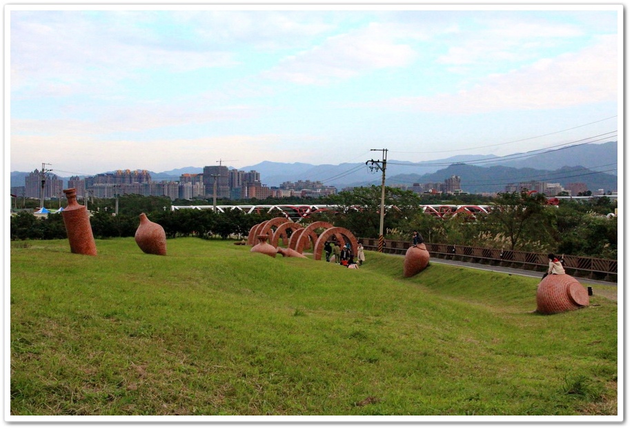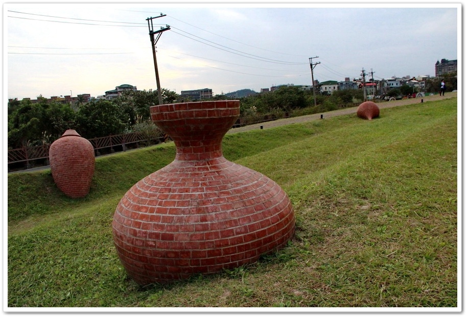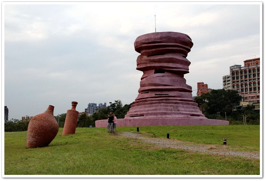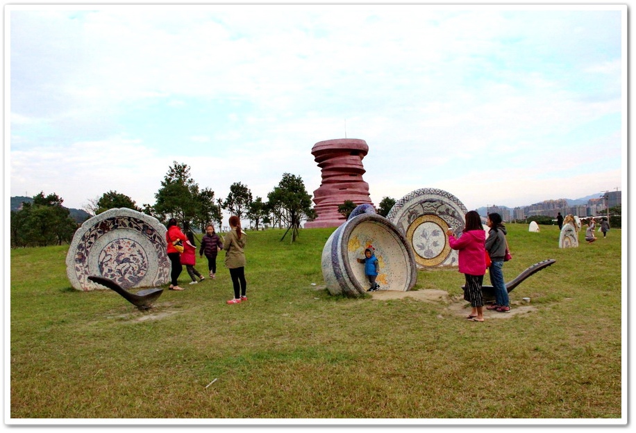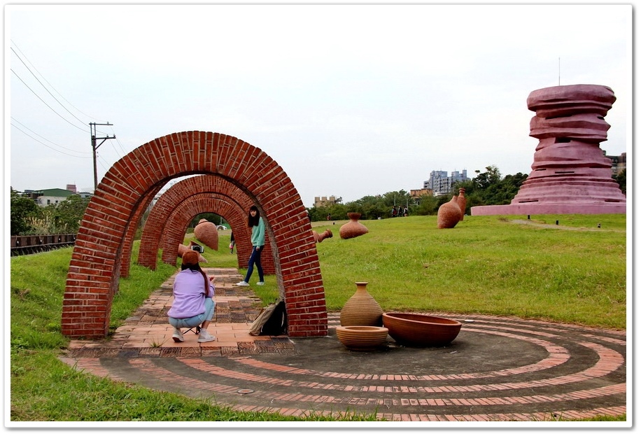 然後走到這裡是『三鶯之心空間藝術特區』,藝術特區佔地2公頃,為一結合『藝術地景』和『地景藝術』的水岸綠地。新北市政府規劃以『煉.土』為主題,設置了《坯》、《瓷意生活》、《走泥》、《王者之杖-1804》4件陶瓷等公共藝術作品