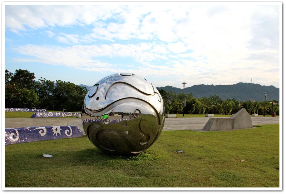 在『三鶯龍窯橋』對面的『未來廣場』草地上,有一顆透明的鐵球,表面刻畫著太極或是火雲的圖騰,那就是象徵著『祥龍搶珠』的祥瑞意象,也象徵凝聚更多的財富與好運