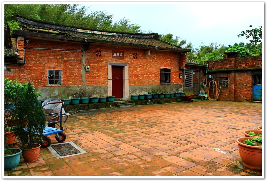 照這『源興居』的格局來看,本是一棟傳統的三合院建築,後來龍邊已改建成為樓房,虎邊一段廂房還在,但屋頂已覆蓋成鐵皮,或許之前有圍牆,圍成兩進的庭院曬穀場,那是大戶人家才有的格局