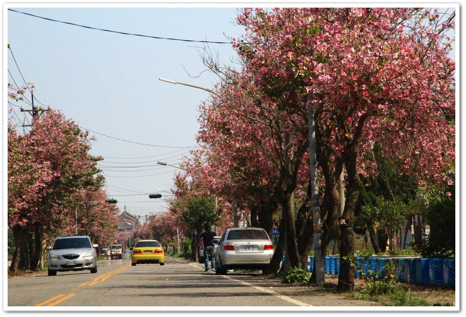 粉紅色的花影讓整條大道染上戀愛氛圍
