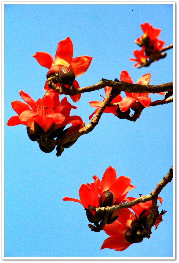 只要順向著陽光就能拍出亮紅的木棉花與藍天