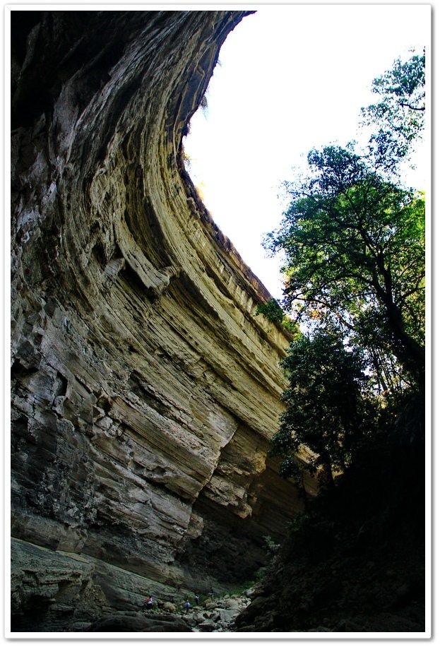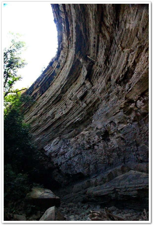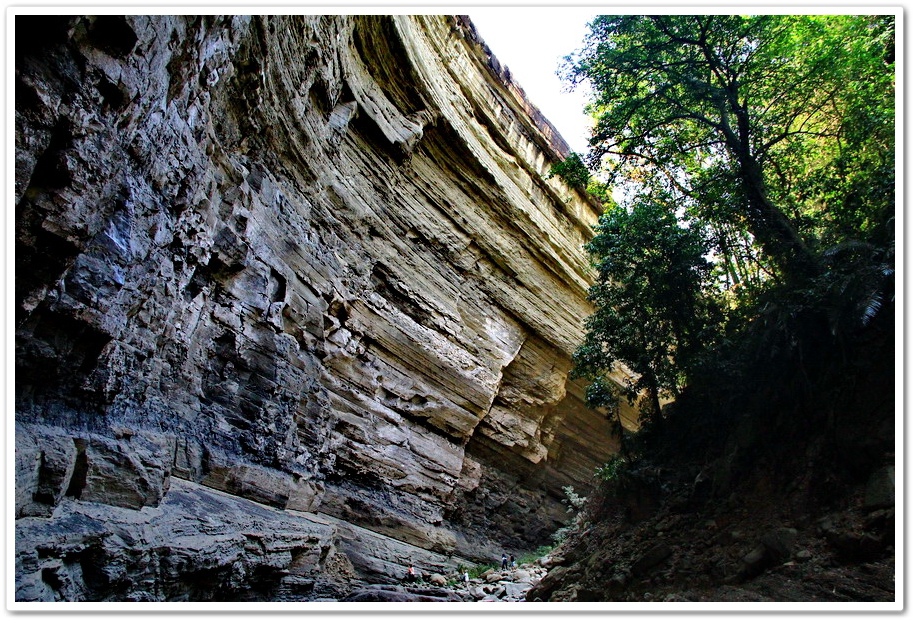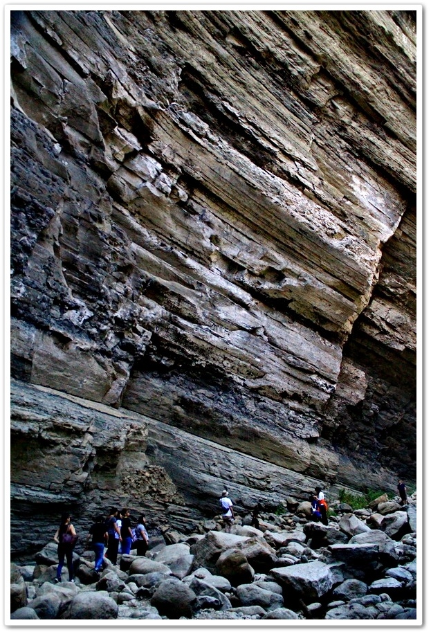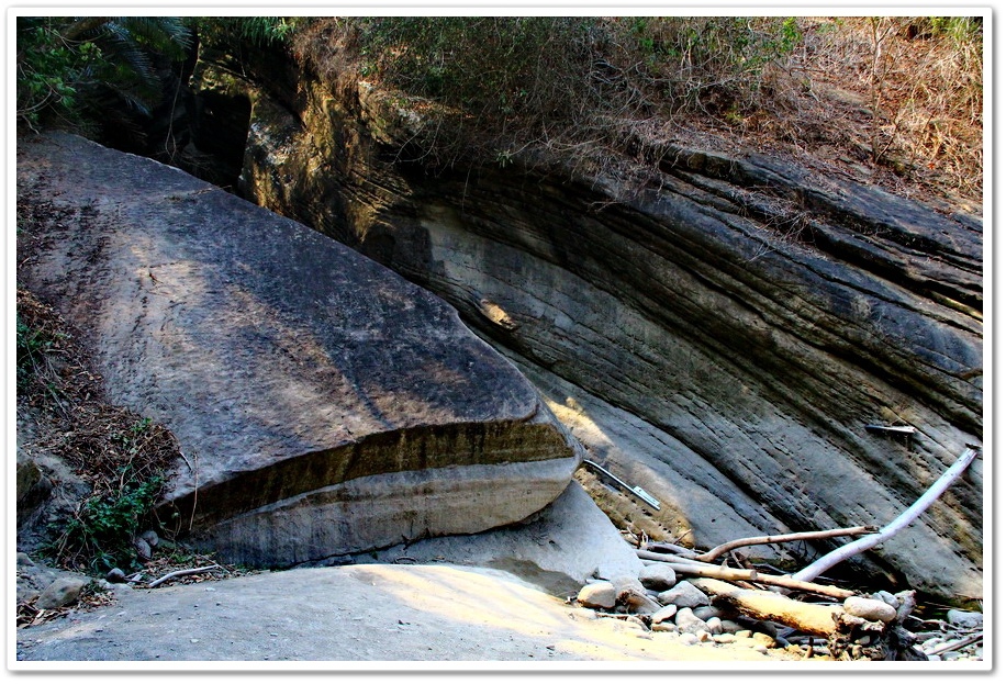 接著是層理明顯的砂頁岩互層差異侵蝕造成頁岩處凹入