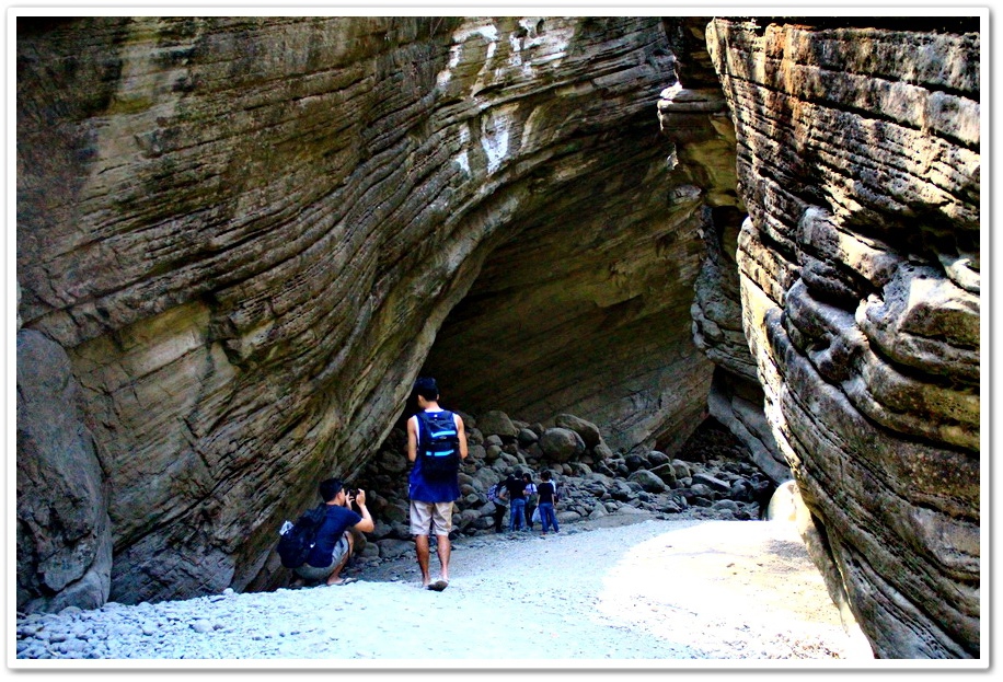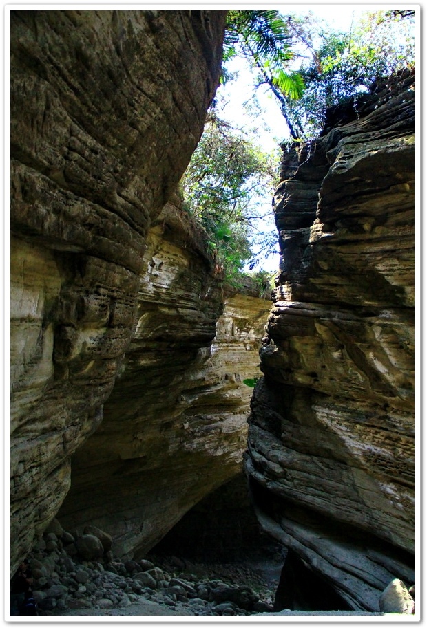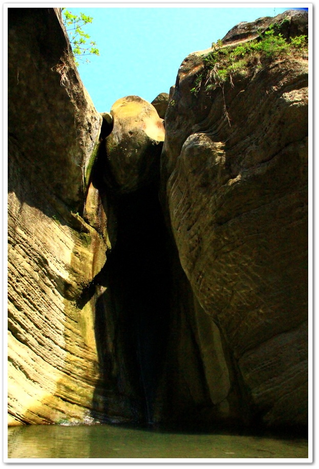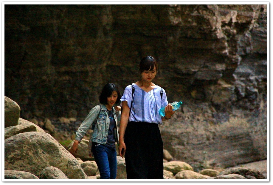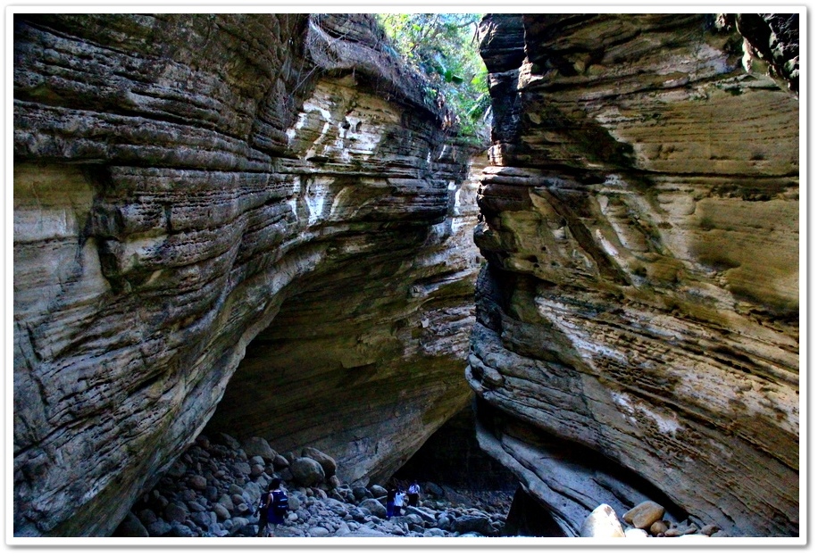 谷底有許多尚未完全圓磨的砂岩巨礫