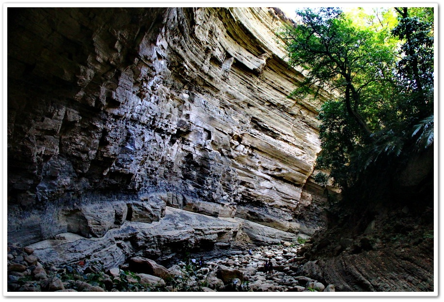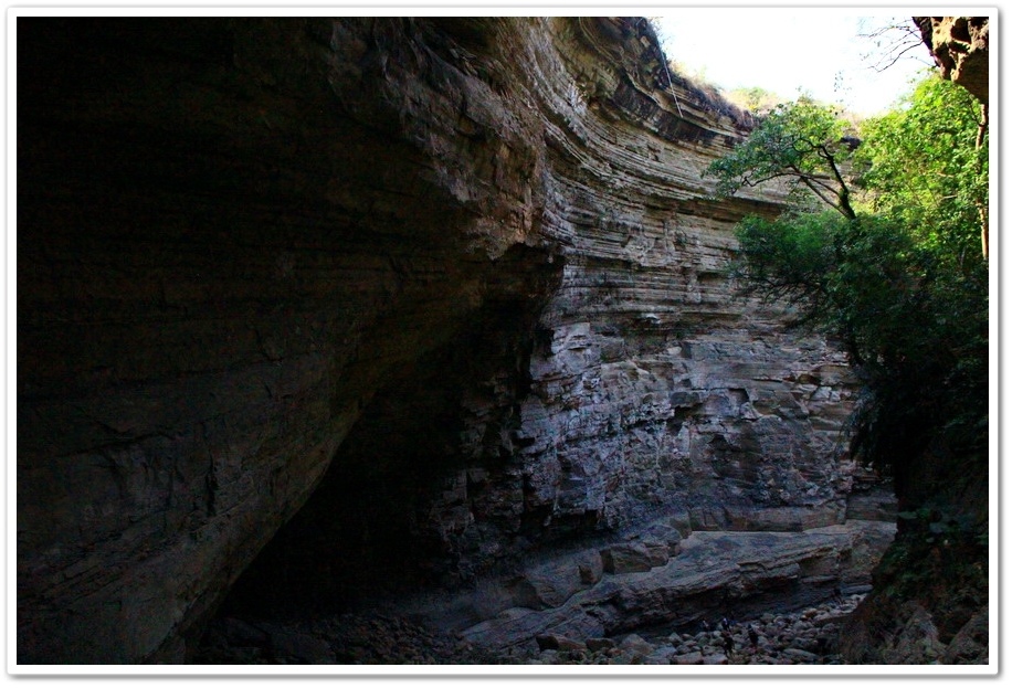 由於峽谷中太過狹窄不太可能是強風所形成的蜂窩岩