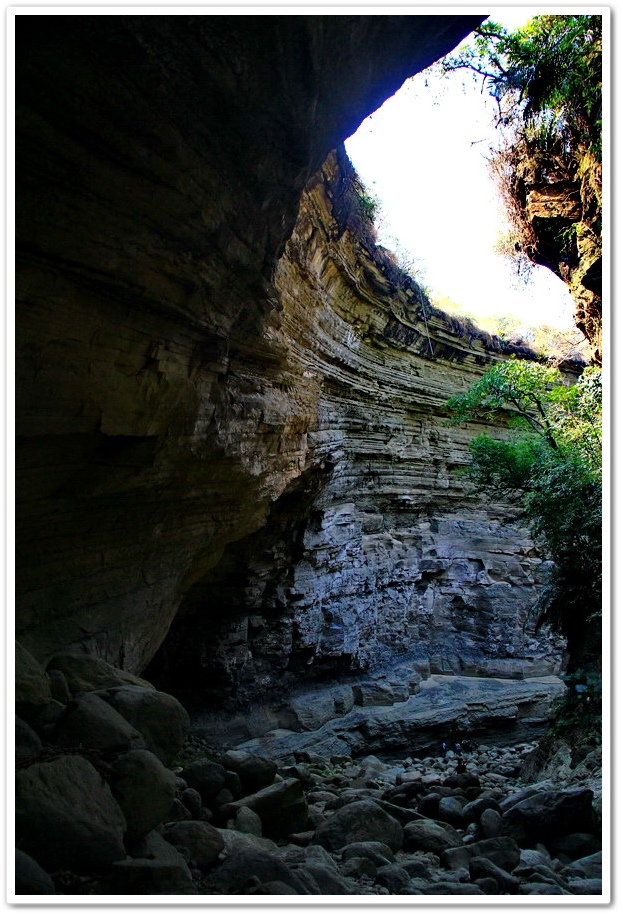 偶爾有幾個大水時所沖蝕出來的凹壁