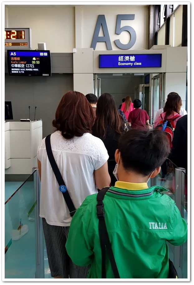 我們是坐早上8點50分『台灣』飛馬來西亞『吉隆坡』的中華航空班機,早上7點報到後隨即托運行李,之後並提早進行通關手續,但由於是『雙十節』連續假的關係,『桃園國際機場』不論是第一航廈或是第二航廈根本就是人滿為患,據『通天巴士』的司機說10月7日連續假的第一天出國人數更是驚人,他往返於機場時間就足足有5個小時