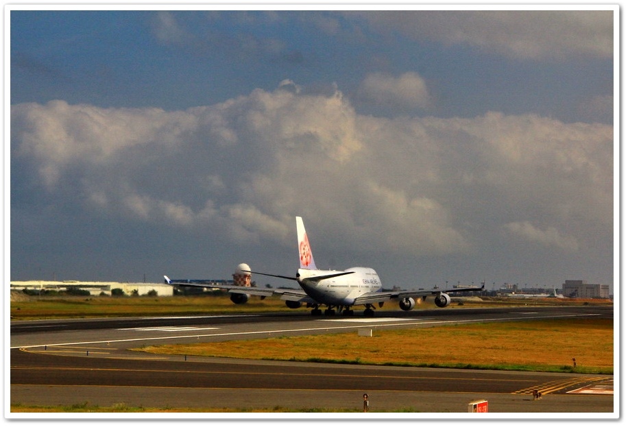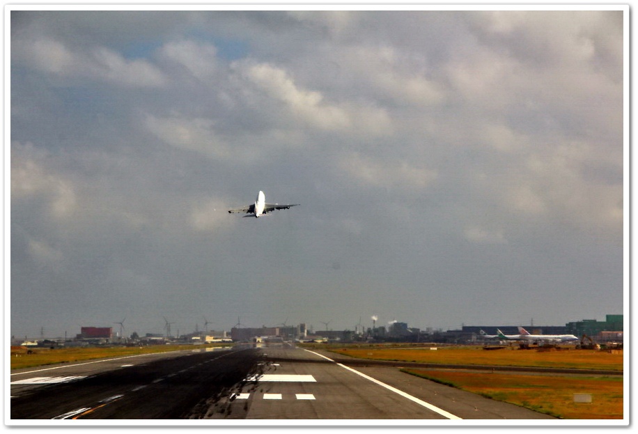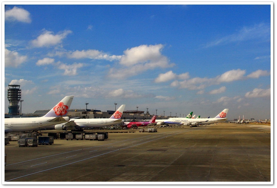 對於『桃園國際機場』作業到底有多繁忙,看看上圖這張照片就可以知道,每架起跑飛機都需排隊進入飛行跑道等待起飛,起飛時間每架飛機間隔不到10分鐘,塔台根本就是緊繃神經在指揮