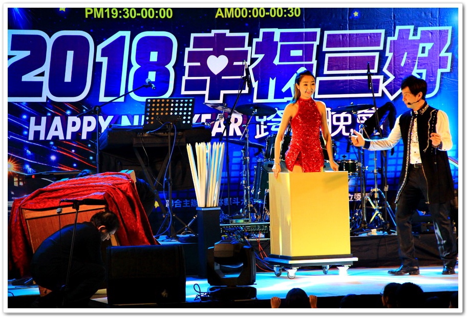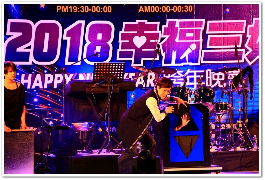 接下來由魔術達人『粘立人』上場表演,『粘立人』是此次跨年晚會表演者中,惟一我認識的藝人,其他都是沒見過、也沒聽過的藝人