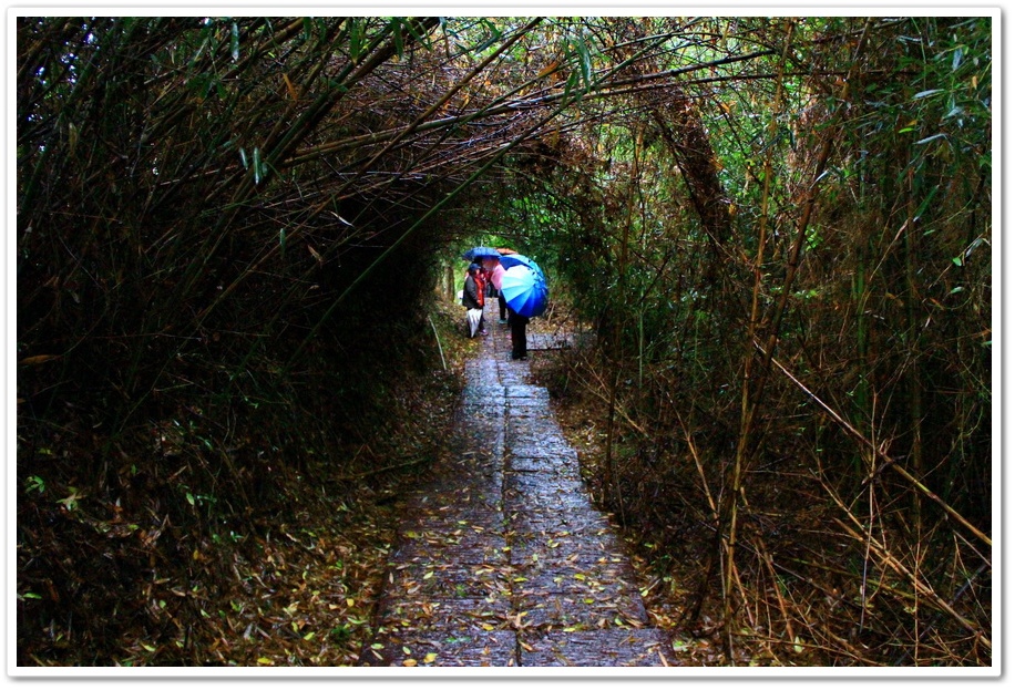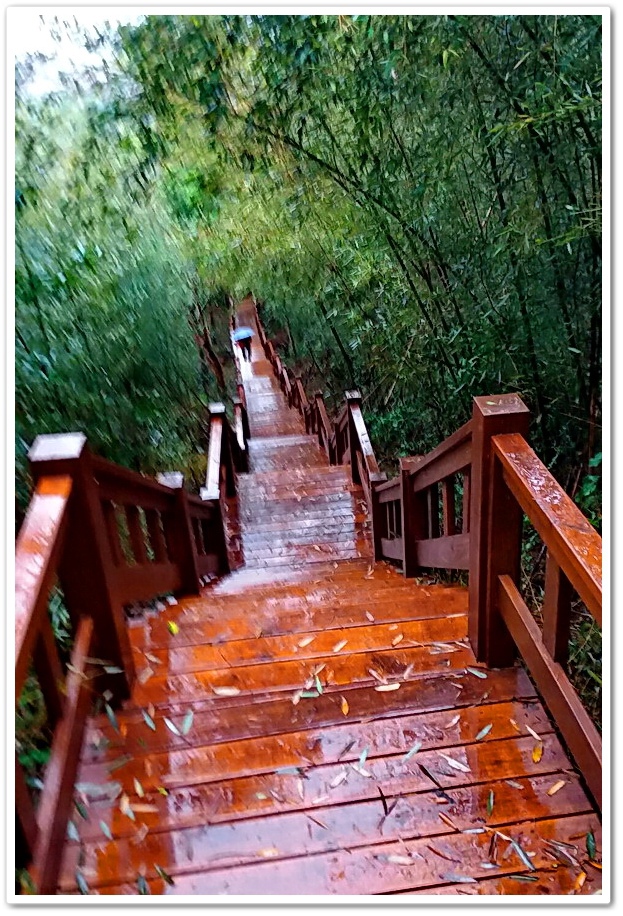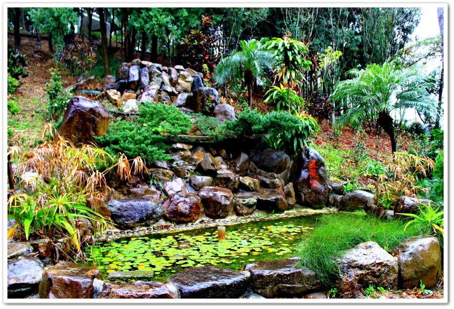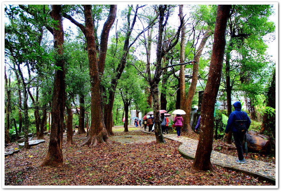 經過寺廟後,一路上欣賞樹幹上木牌寫的生活禪語,分散登山時的疲累,下山時可在此休憩靜坐,心靈上更覺清澈寧靜
