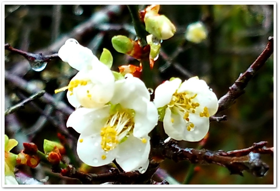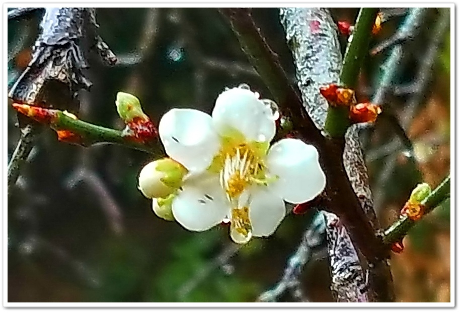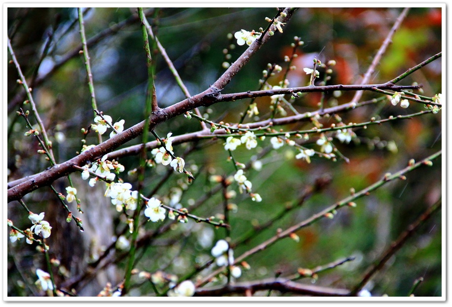『圳寮路』兩旁種植著梅花,此時正值開花期,上一波寒流來襲,把梅花吹彿得綻放到非常燦爛,遊覽車身一路磨擦著梅花樹枝,走過之後像是下雪一般,梅花飄落得一片雪白