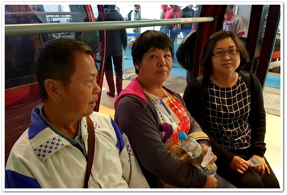 乘坐『雲天纜車』時也跟我們台灣的『貓纜』一樣,等待線前方也會有一方格,工作人員會安排下一個車廂的人數,等車廂到達時直接坐上去就好