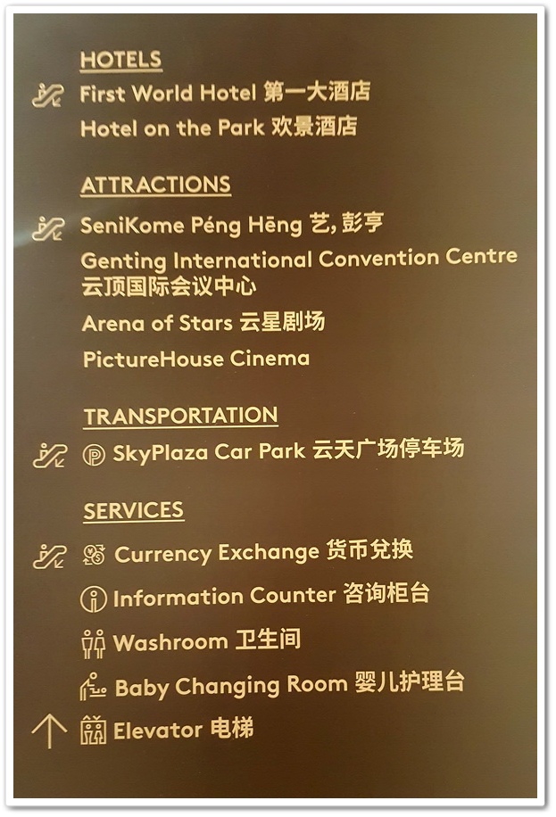 現在時間是下午2點半,導遊『阿良』要先帶我們去參觀賭場,之後再各自參觀『雲頂娛樂世界』,然後於下午4點再於此處集合坐『雲天纜車』下山,所以在此我們有1小時半的時間可以任意參觀商場