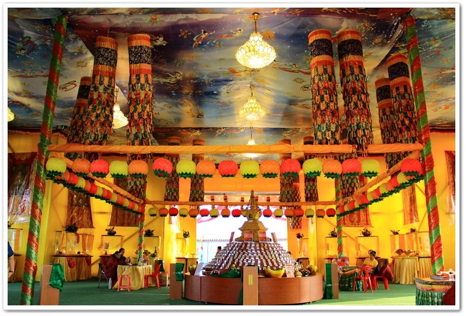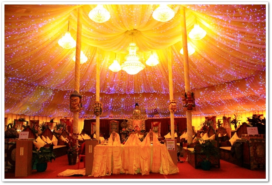 位於宗教燈區的藏傳佛教嘠檔巴燈區,占地1,500坪,有來自蒙古大草原60公尺寬的巨型蒙古包、莊嚴殊聖的檀城、巍峨高聳的飛巖瀑布、吉祥的轉經輪和西藏牌樓,讓賞燈的遊客近距離感受藏傳佛教宏大的願力,以及釋迦摩尼佛與諸佛菩薩的加持,讓大眾可以有好健康、好人緣、好事業、好財富,新的一年人旺、財旺、好事旺旺來