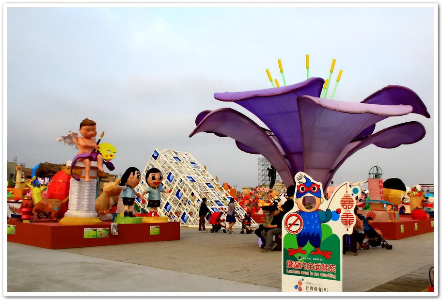 吃完滷肉飯後開始拍照,由於接近『佛教燈區』,所以先從『佛教燈區』開始拍起,反正主燈『忠義天成』要在晚間6點才開始點燈,先逛逛『佛教燈區』也好