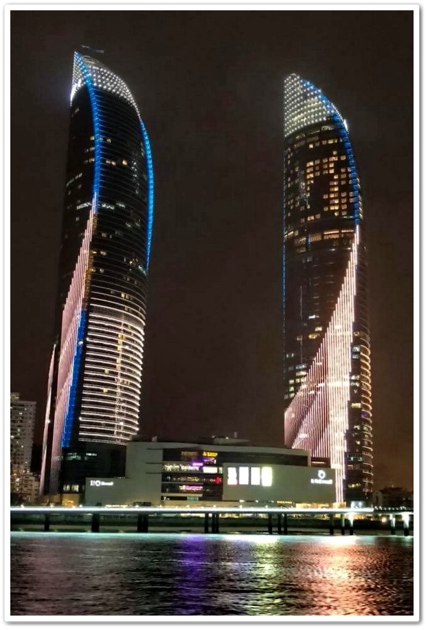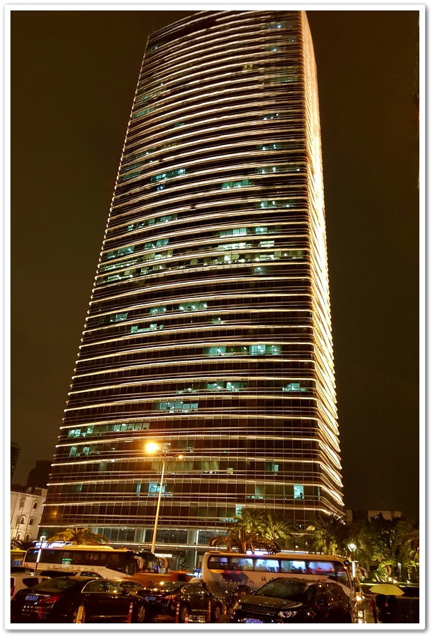 由於『海上游金門』航程時間約80分鐘,所以我們也有同樣時間可以逛逛廈門市環島路的河岸風光,而這一棟是廈門『世貿雙子星海峽大廈』,建造時間:2015年。樓層:64層。高度:300公尺。中國首座雙塔摩天樓,設計師為世界最高七星級酒店杜拜『伯瓷酒店』的建築設計團隊。大廈從外觀上看,就像兩片風帆,在廈門海面上乘風破浪
