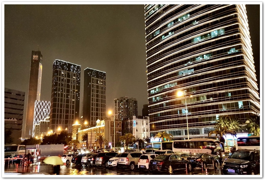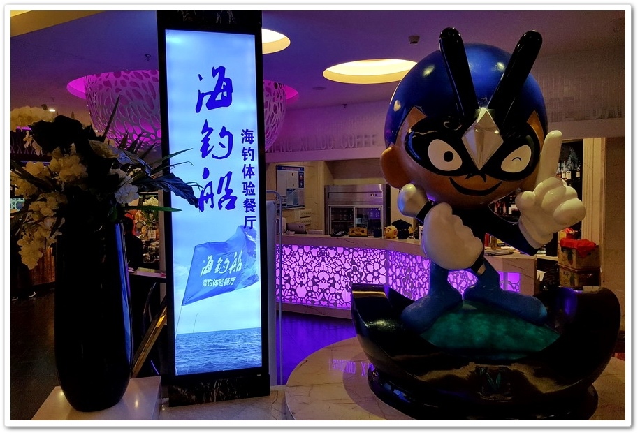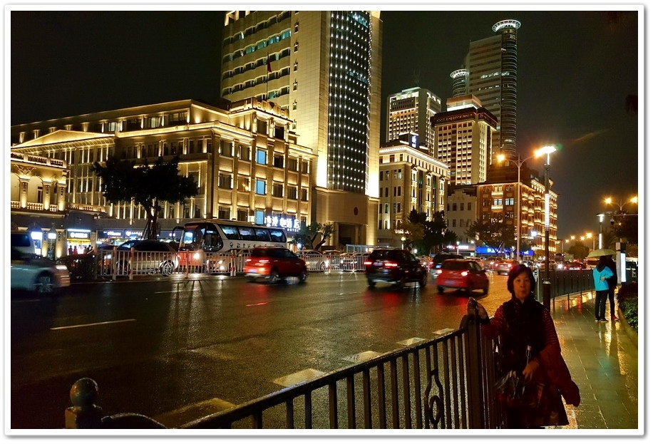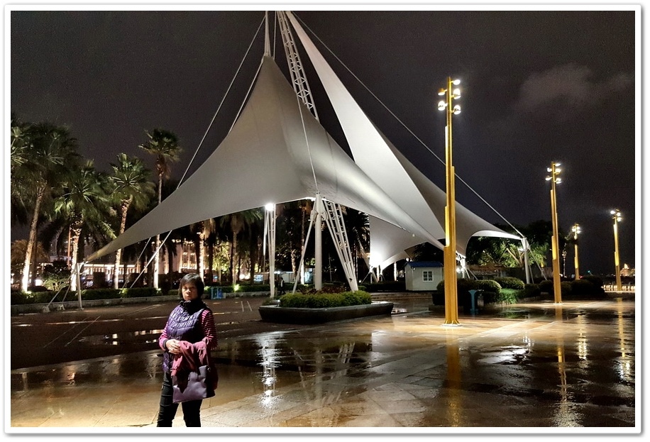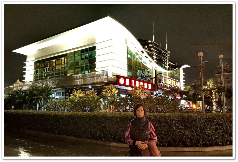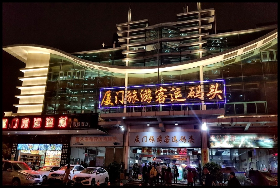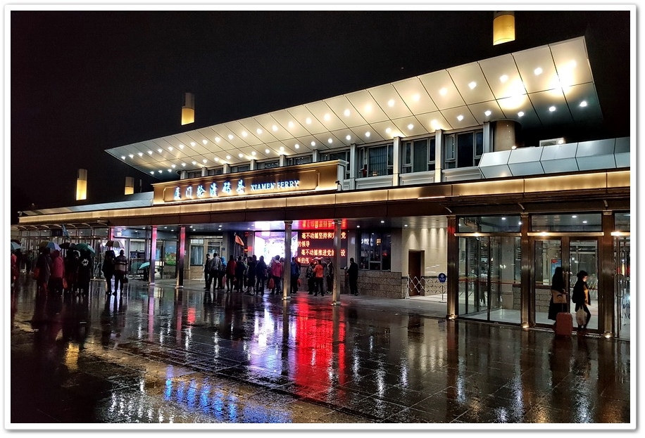 最後我們走回程到原來的『廈門旅遊客運碼頭』,因為還在下雨的關係,我們在客運碼頭邊的廈門『南海漁村餐廳』門口,等待團員們『海上看金門』夜遊活動完成,再一同搭遊覽車回住宿的廈門『聖希羅大酒店』