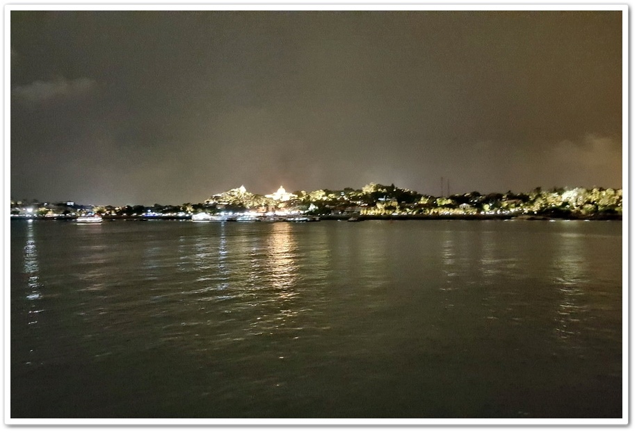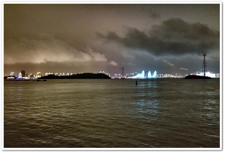 聽說在白天,遊船到金門海域的近距離海面時,可以看到聳立在『大膽島』上『三民主義統一中國』的巨輻標語,還隱約可以看到一些軍事設施及阿兵哥的晃動,但是在晚上其實也就只有能看到島上的燈光而已