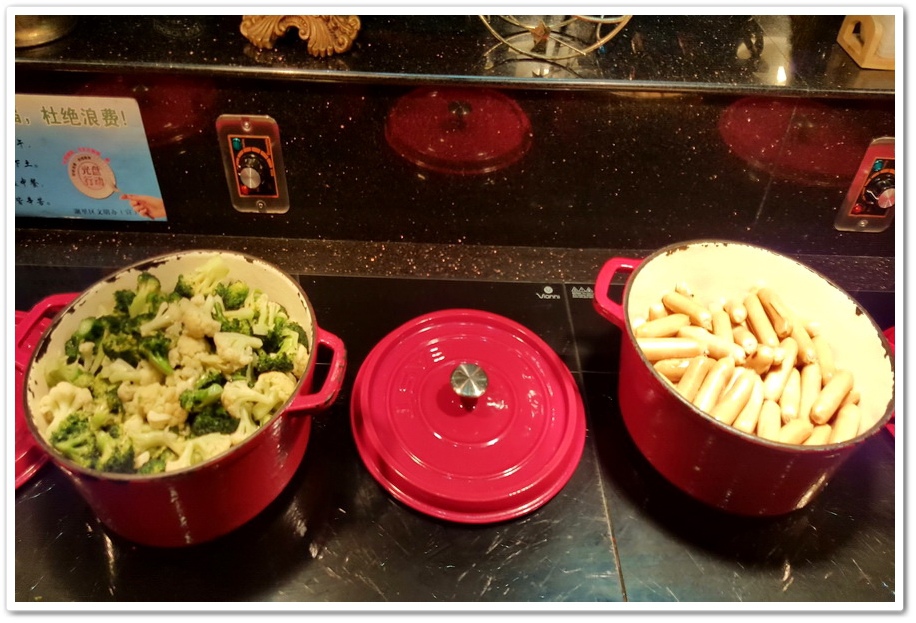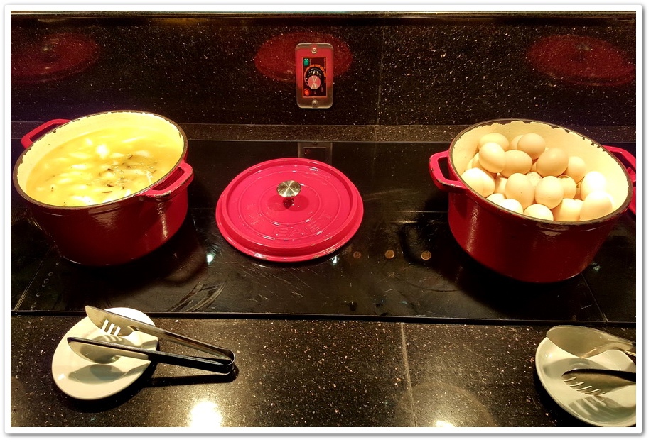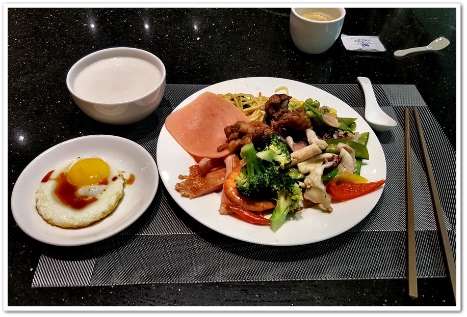 這是我夾的一盤早餐,今天有看到廚師現場煎蛋,隨即要了一顆我最愛的半熟荷苞蛋,因為廚師一個人要顧三口爐子,我跟廚師說蛋不能太熟,但最後這顆蛋還是太熟了一點點