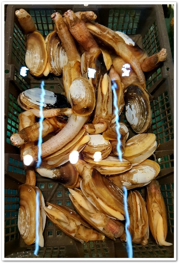 『象拔蚌』的殼一般長15-20厘米,但是其虹管可長達一米,形似象鼻,又大又多肉,因此被稱為『象拔蚌』,一般生活在水溫為3-23℃的海域,以海水中的單細胞藻類為食,也可濾食沉積物和有機碎屑,隨著年齡增長,貝殼生長漸變緩慢,但軟體生長仍能繼續,壽命可達100多年