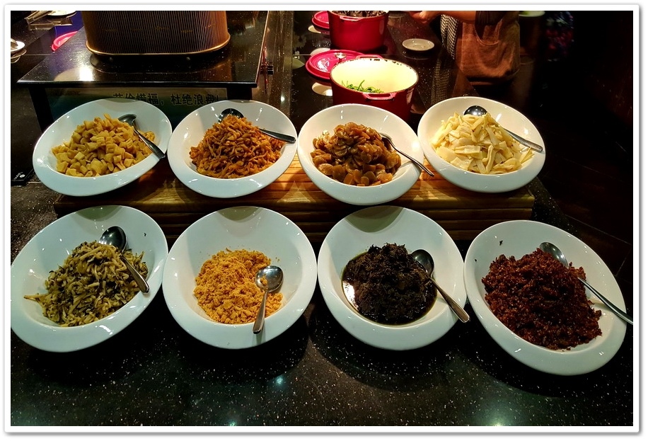 酸菜、肉脯、菜心、脆筍等一些配清粥的菜色