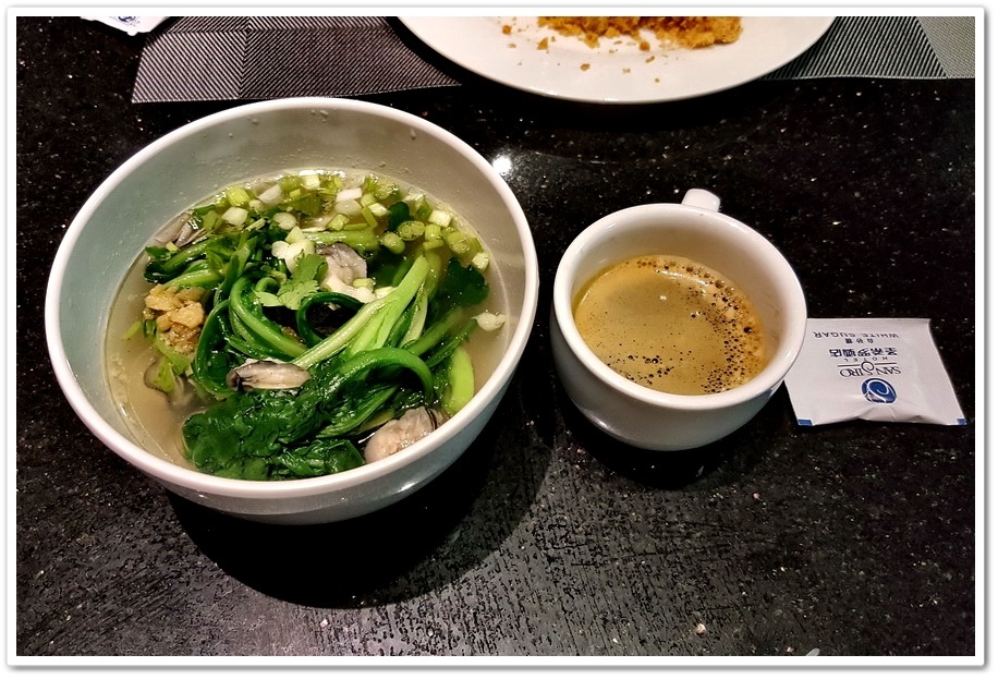 還有另一名廚師負責幫客人煮麵或青菜,我拿了一些茼蒿跟生蚵給廚師煮,廚師煮好了之後會放一邊,然後客人自行去端來吃,早餐吃完之後就啟程到廈門『五通碼頭』坐船回金門,開始我們『金廈小三通四日遊』的第四天金門購物行程