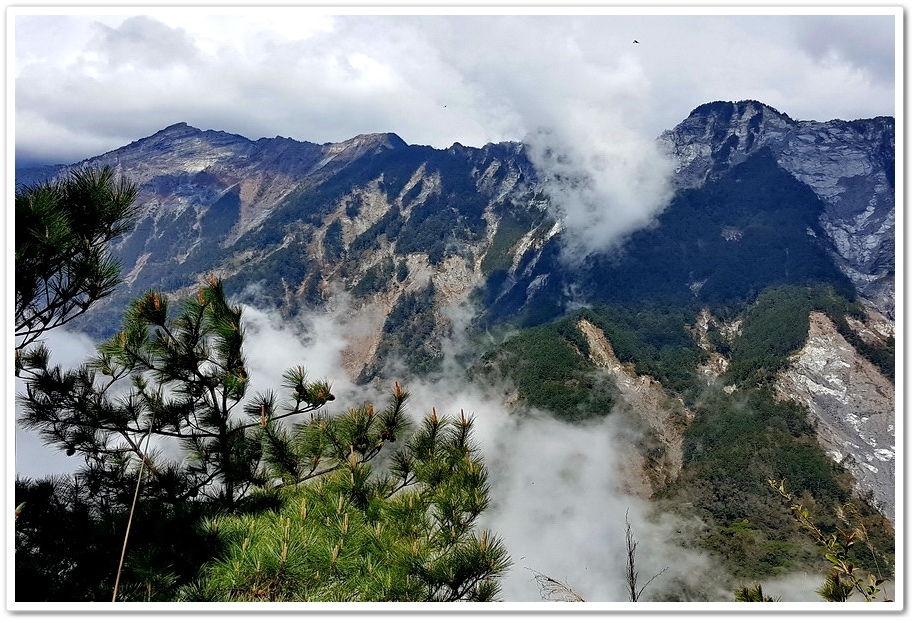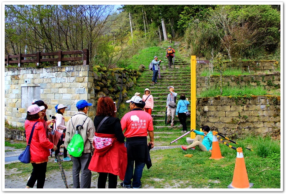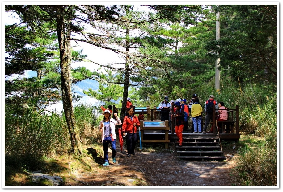 我們選擇松景步道(1,231)接松濤步道(1,560公尺)到觀景平台,眺望氣勢磅礡的『南台首嶽』大關山嶺山,及鷹子嘴一瀉千里的大崩壁,由此處指標到第一座涼亭還有225公尺