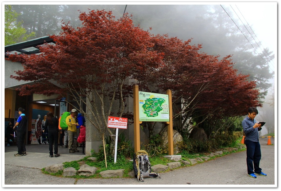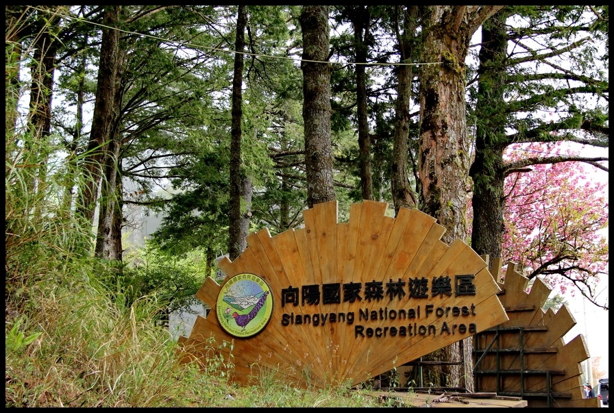 在觀景台歇息拍照後返回『向陽森林遊樂區』門口,雖然『向陽森林遊樂區』目前是休園狀態,不過!只是名義上的休園,實際上為提供登山客爬『嘉明湖』,園區內的三、四條步道還是處於開放中,遊客只要申請入山証,就可以在園區內,享受芬多精