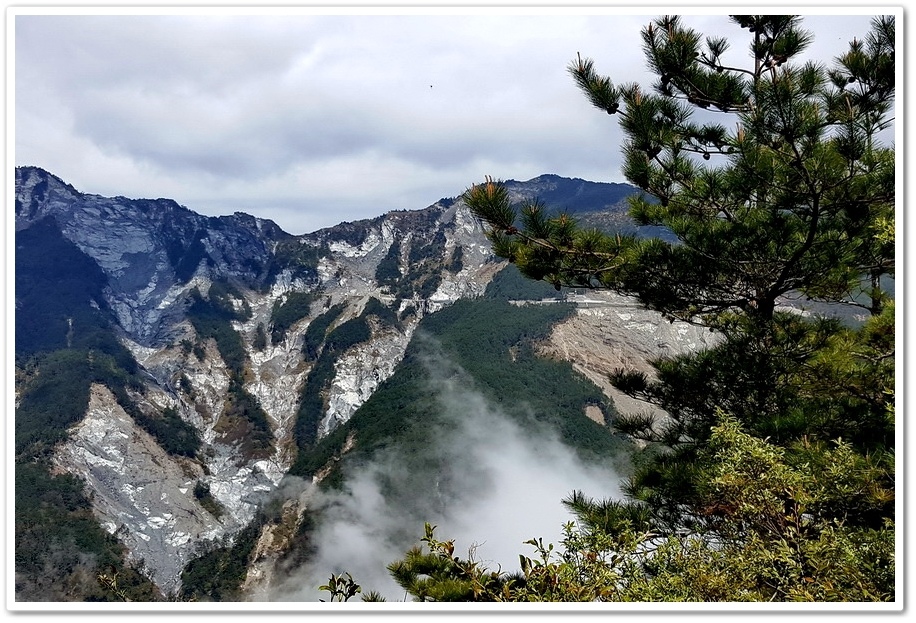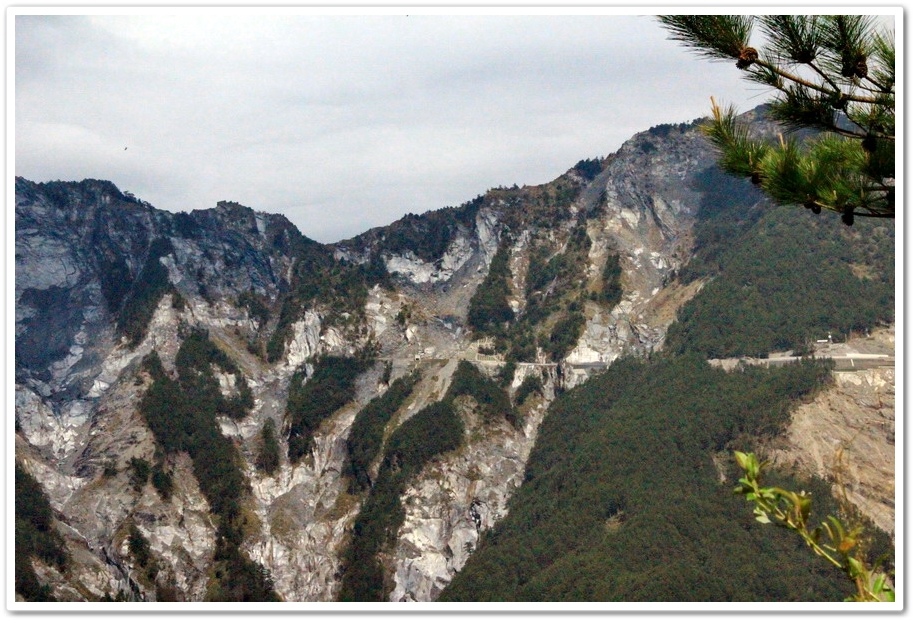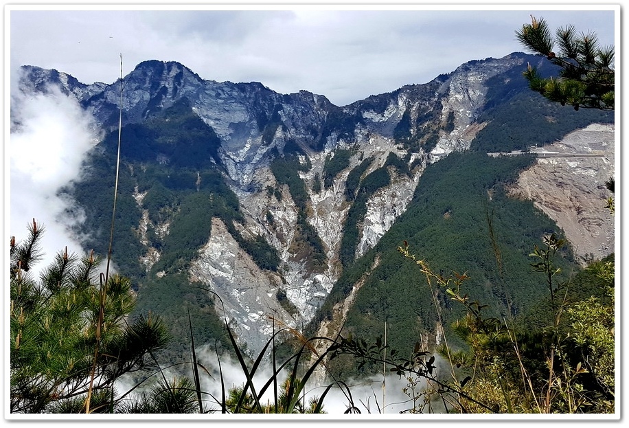 由觀景台眺望過去即是南橫公路『埡口山莊』附近的『向陽大崩壁』,『南橫公路』也就是因為『向陽大崩壁』這一段山路持續崩塌,而導致公路中斷好幾年都無法通車,頁岩地質的鬆脆讓施工更增加其難度
