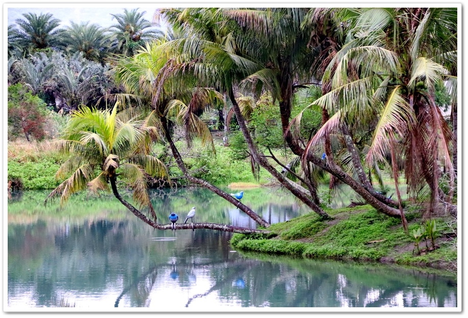2014年來的時候,我是沿著上圖『咖啡吧』的湖邊一直拍,這裡有許多南洋棕櫚樹和落羽松,但現在我只能透過籬笆的孔隙,拍到像上圖的這樣場景