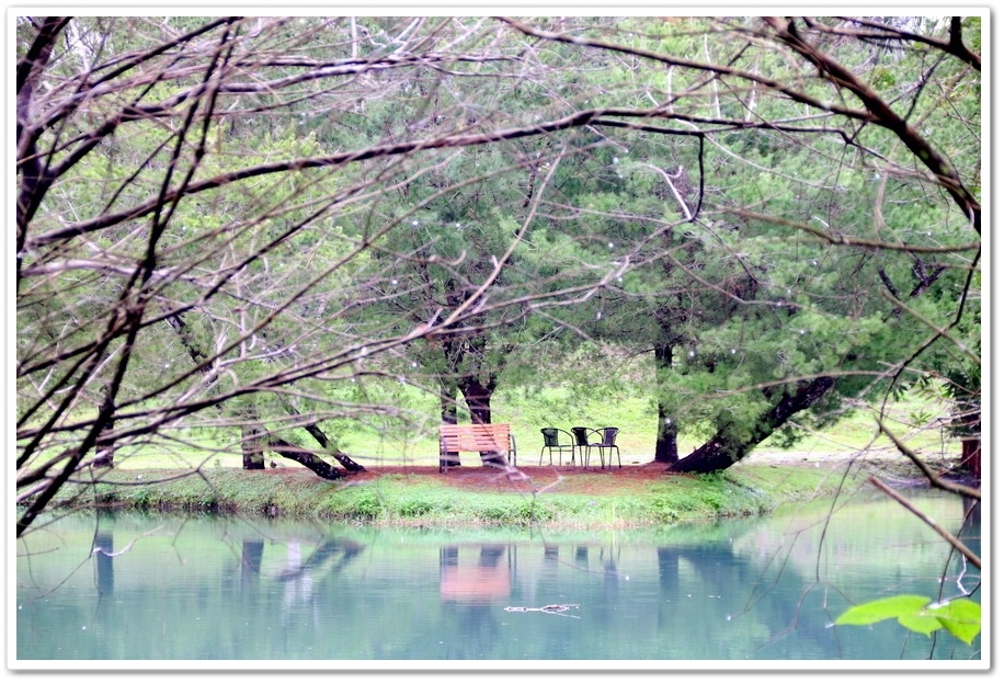 湖邊有些褪去秋冬繽紛華麗色彩的綠色植物,綠意的視野無限舒暢,夏日綠色療癒的『雲山水』美景,仍然驚嘆於它的空靈秀美