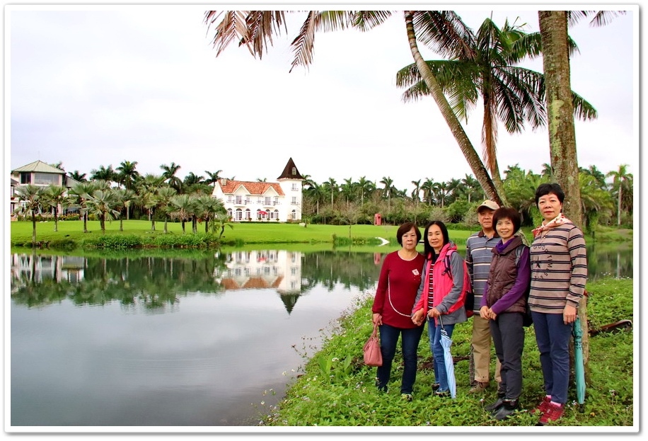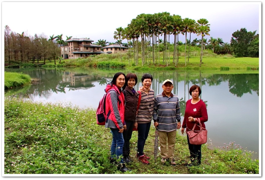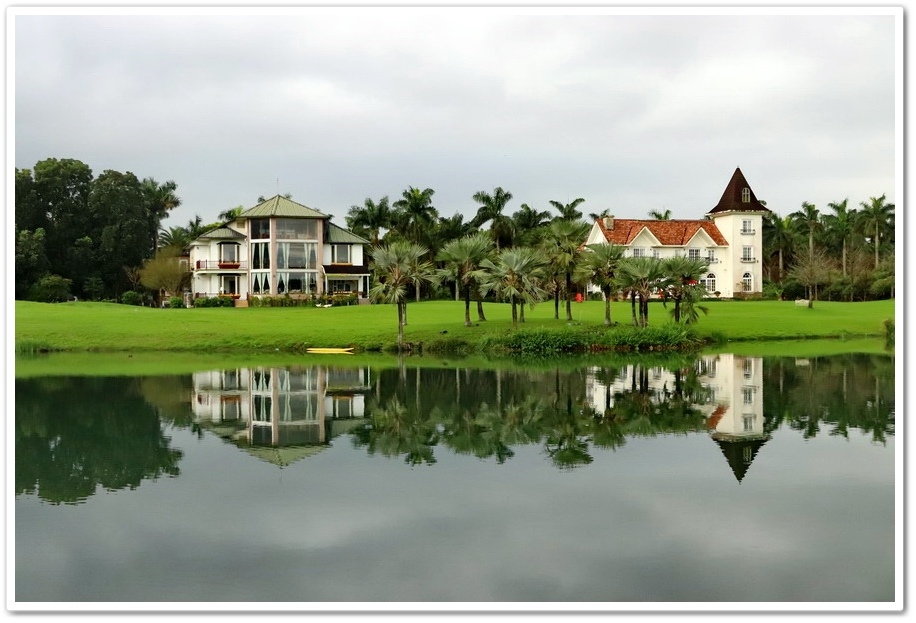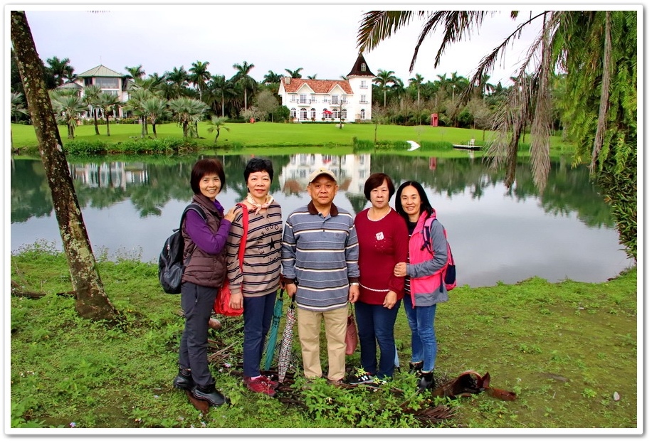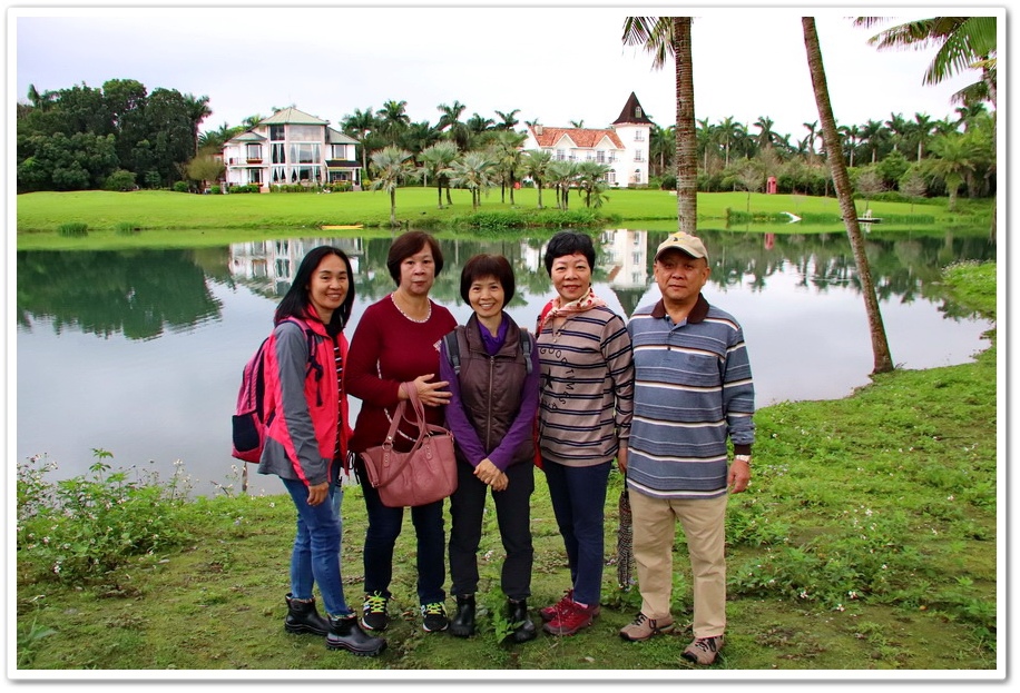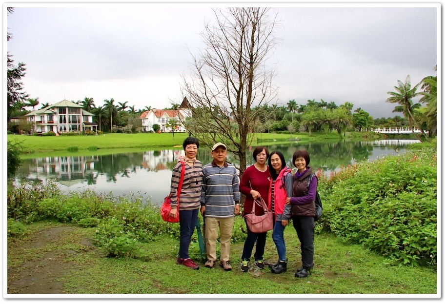 趁著興建民宿沒有圍籬的空地上,我帶團員走到湖邊,上圖湖邊對面是『雲山水民宿』,旁邊則是『雲山水逸翠軒會館民宿』,過多的民宿與人潮,也給湖上的白鵝嚇光光了