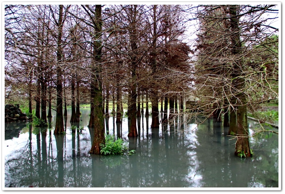 我們沿著湖邊邊走邊拍,一直拍到入水口的落羽松,之後就往回走,目前免費的『雲山水』就只剩這些可以拍,其它的就是要付費了