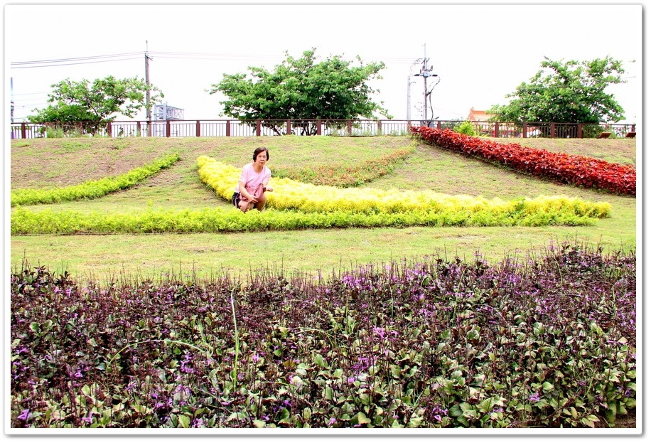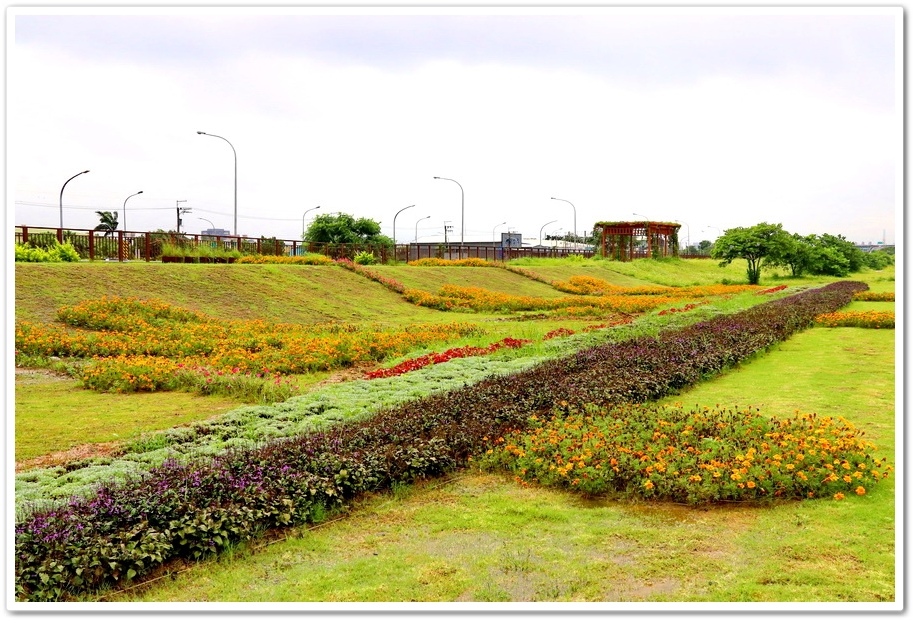 河岸灘地種植不少的花花草草,而這些花草並不是隨便種植的,透過空拍可以顯現出『WELCOME』歡迎光臨的英文字樣