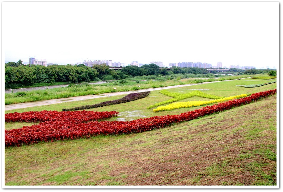 中市政府進行台中門戶迎賓河『筏子溪』景觀工程,在立體文字地標『TAICHUNG』左右兩側近300公尺進行創意植栽綠美化,透過不同組合的花草植生,排列大範圍造型圖案,希望讓更多民眾前往體驗台中門戶的美麗造景