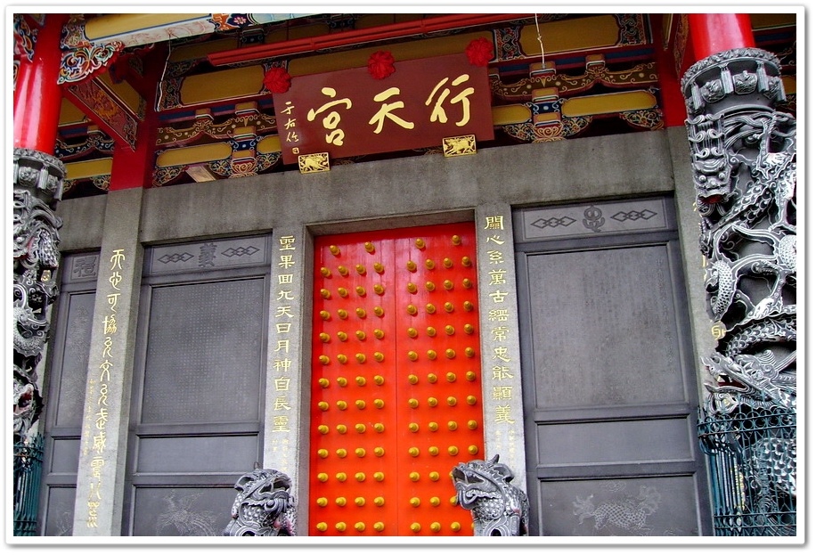位於民權東路二段的『行天宮』,1967年所建立的,建築物整體莊嚴樸實,正殿門匾上有『于右任』所書『行天宮』三個大字,正門五座只有在春秋兩季迎神時才會開放