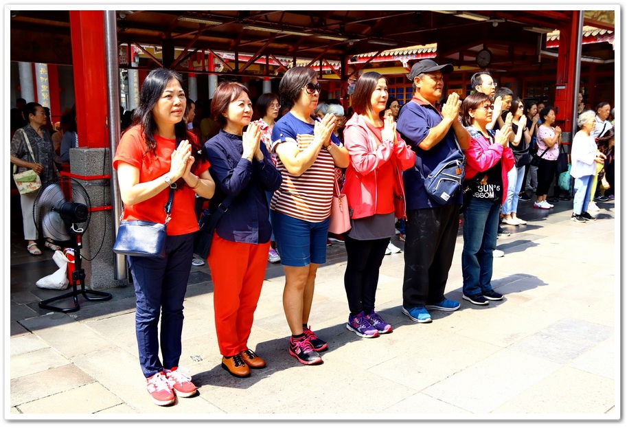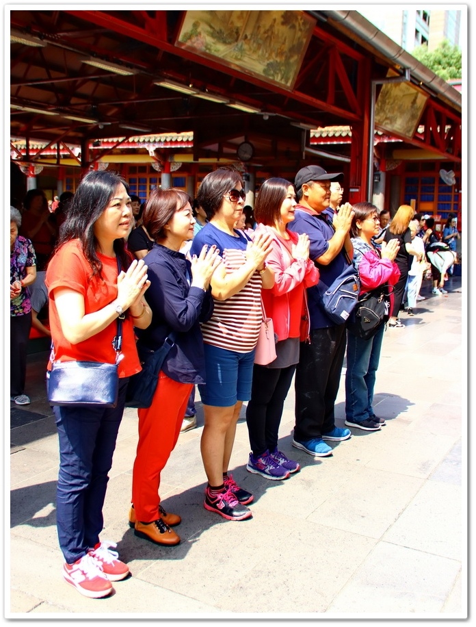 誠心參拜完後,兩邊有廟方志工替民眾來收驚,排隊收驚時,應虔誠祝禱護佑,所以要保持安靜,不要低頭滑手機、聊天、吃東西或嚼口香糖,這樣才能得到神明的護佑!
